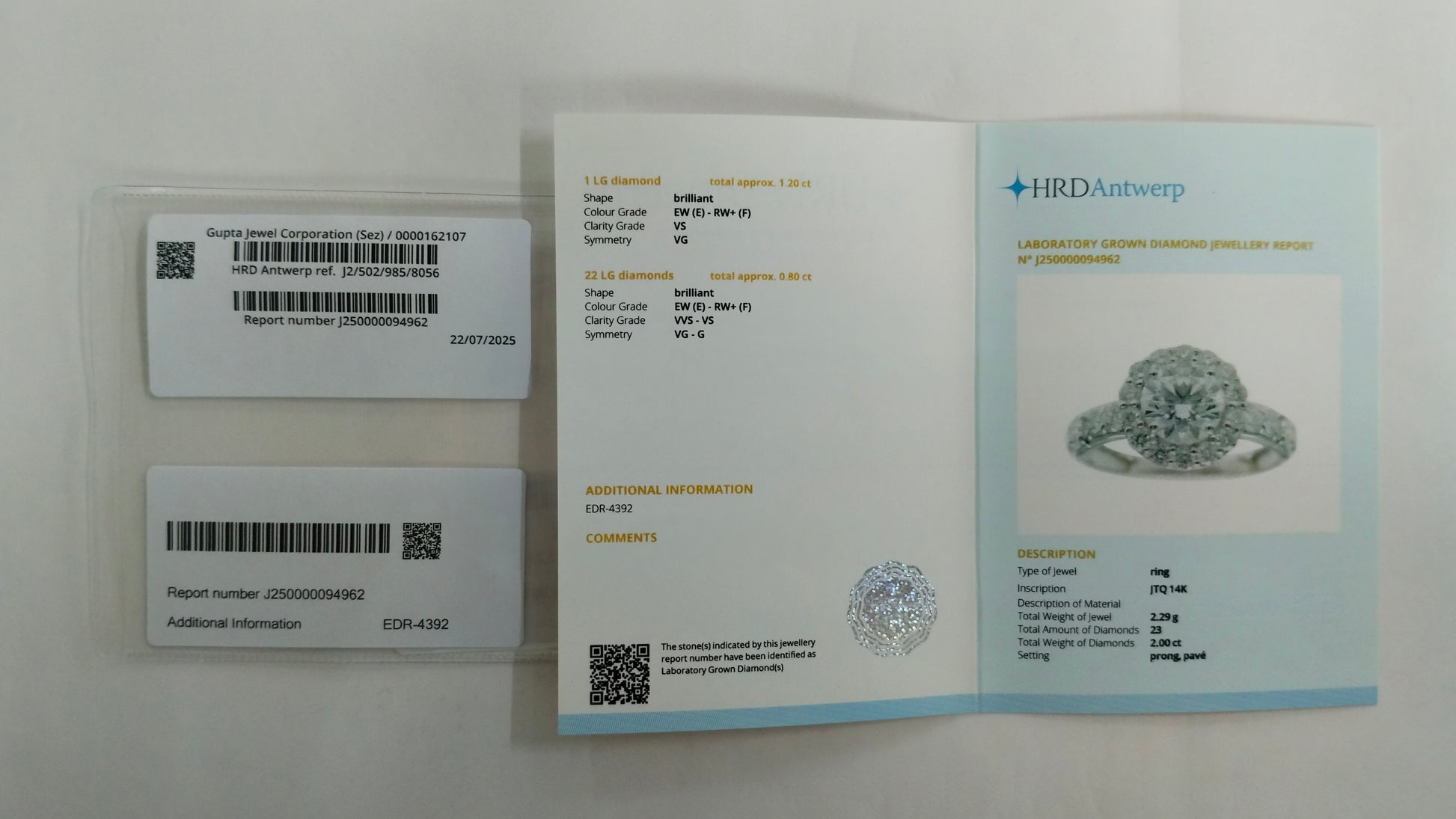 2.00-Carat Lab-Grown Diamond Round Brilliant Ring - HRD Certified