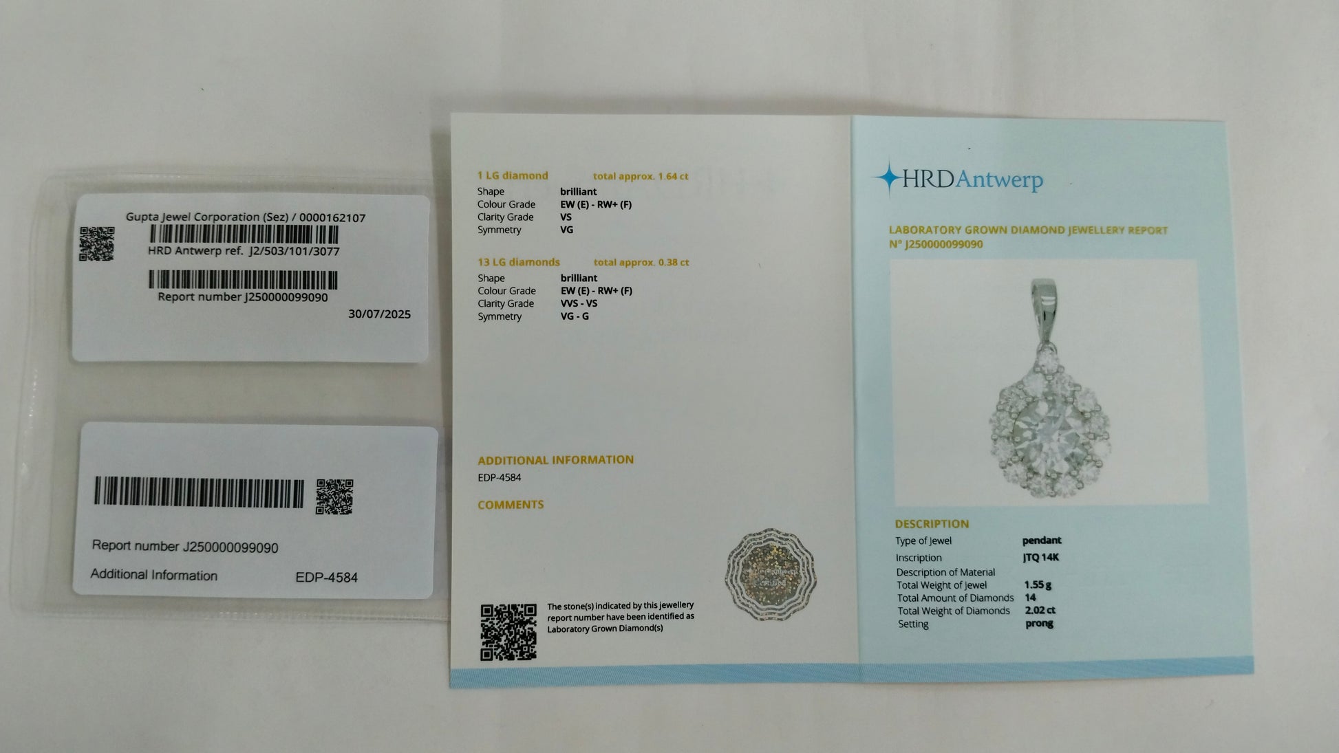 2.02-Carat Lab-Grown Diamond Round Brilliant Pendant - HRD Certified