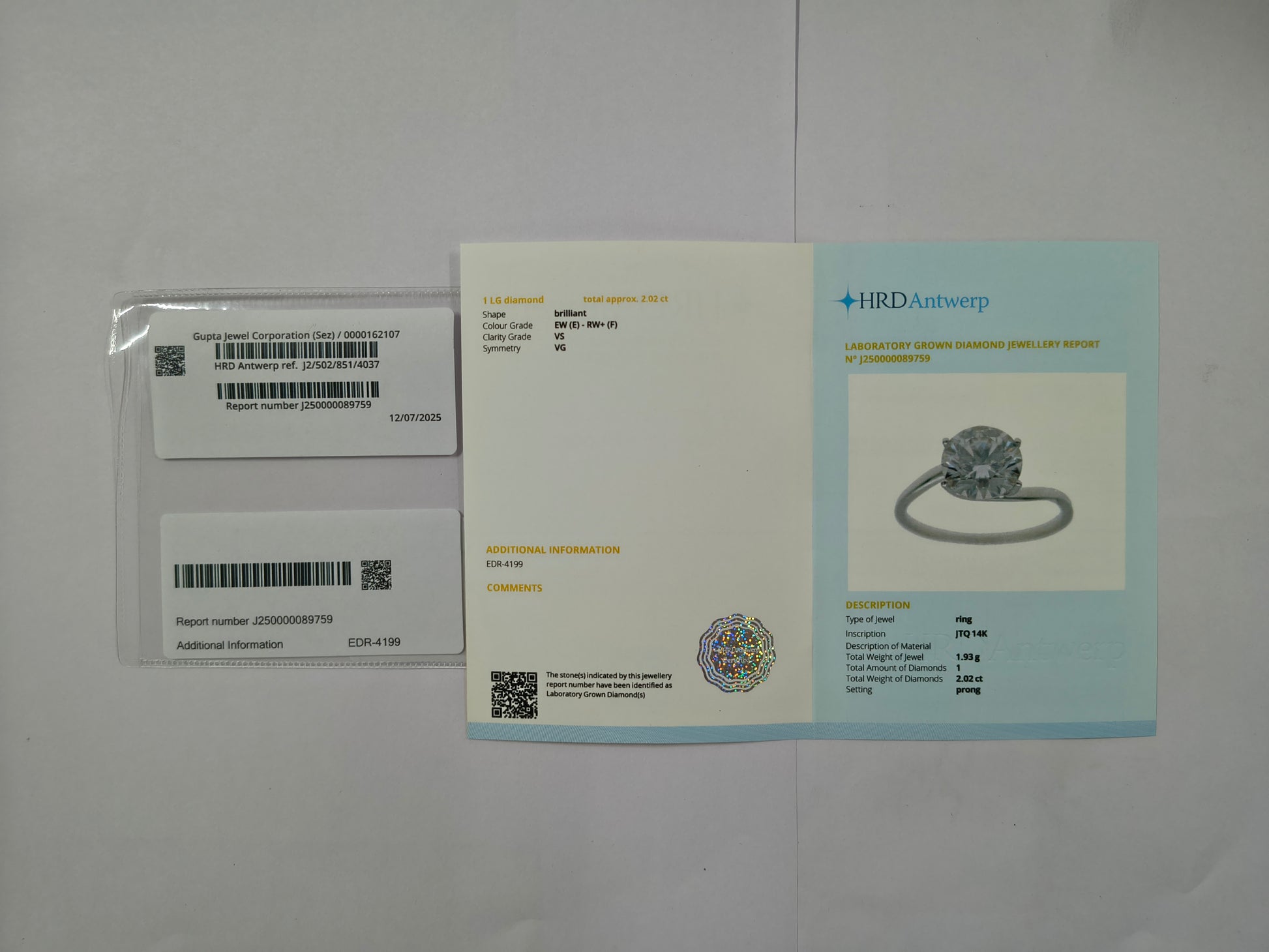 2.02-Carat Lab-Grown Diamond Round Brilliant Ring - HRD Certified