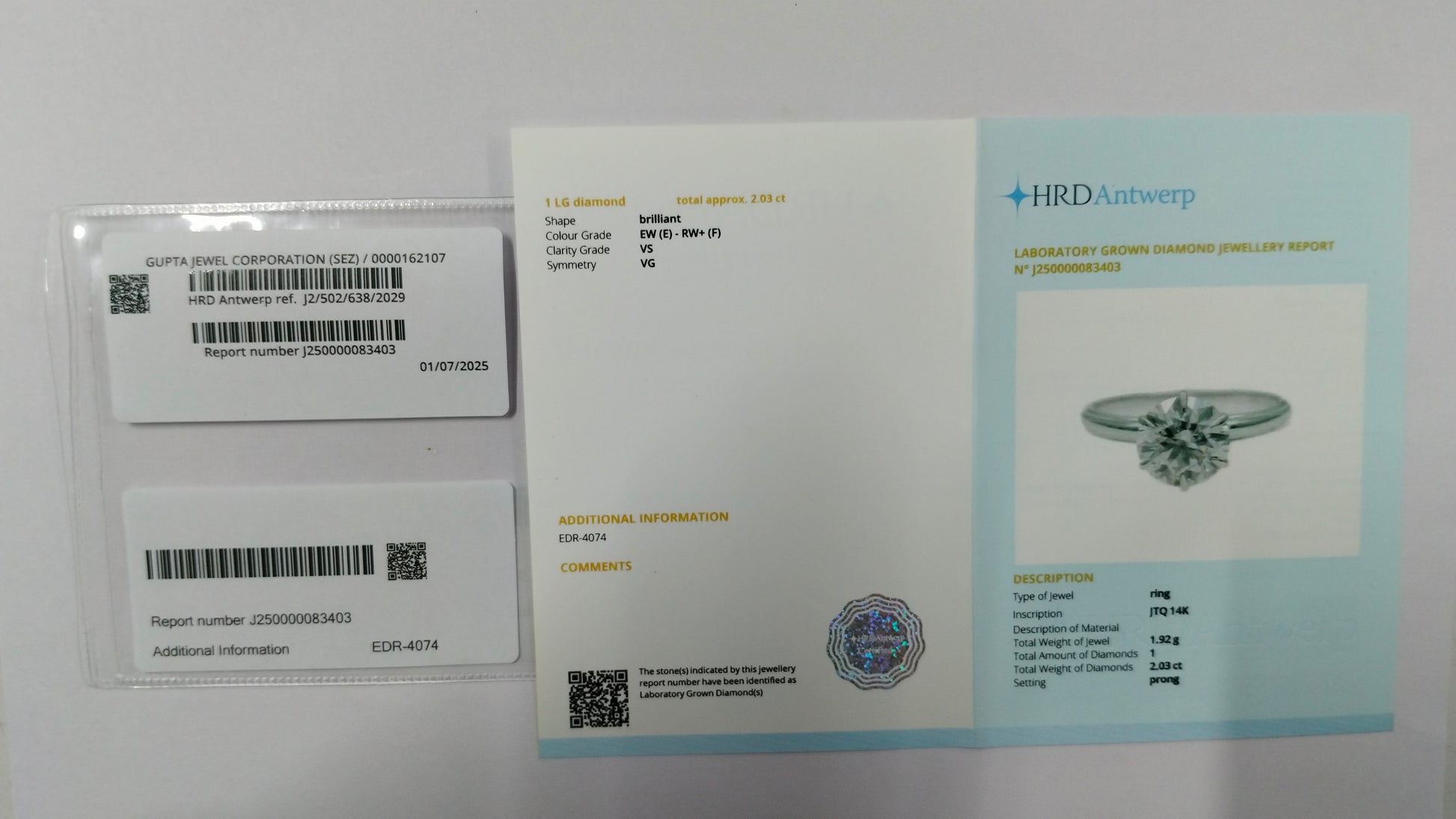 2.03 Carats Lab Grown Diamond 14K Gold Ring
