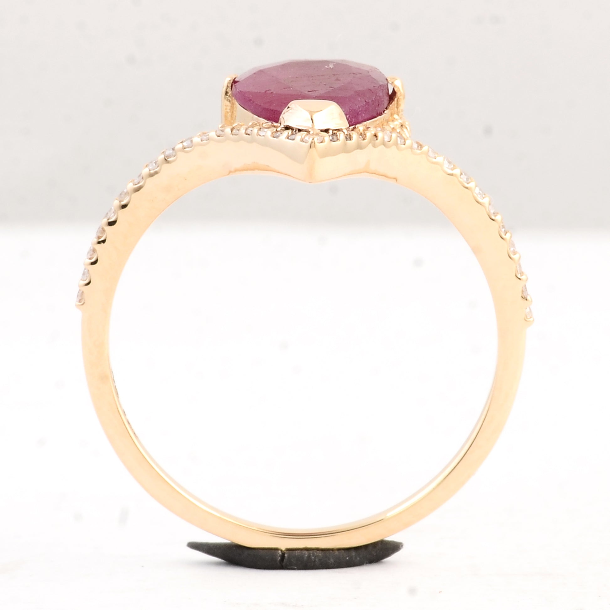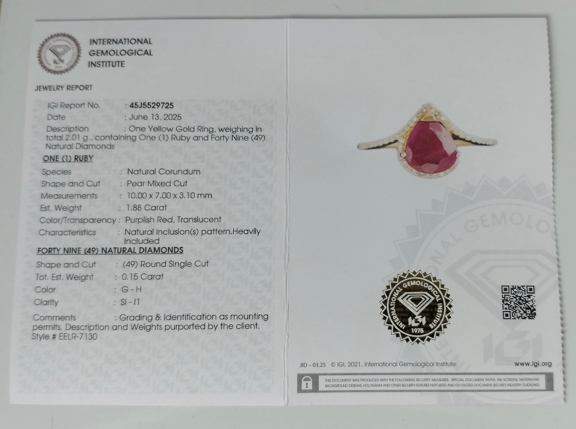2.03 Ct Pear Mixed Cut Natural Corundum Ruby 14K Gold Ring