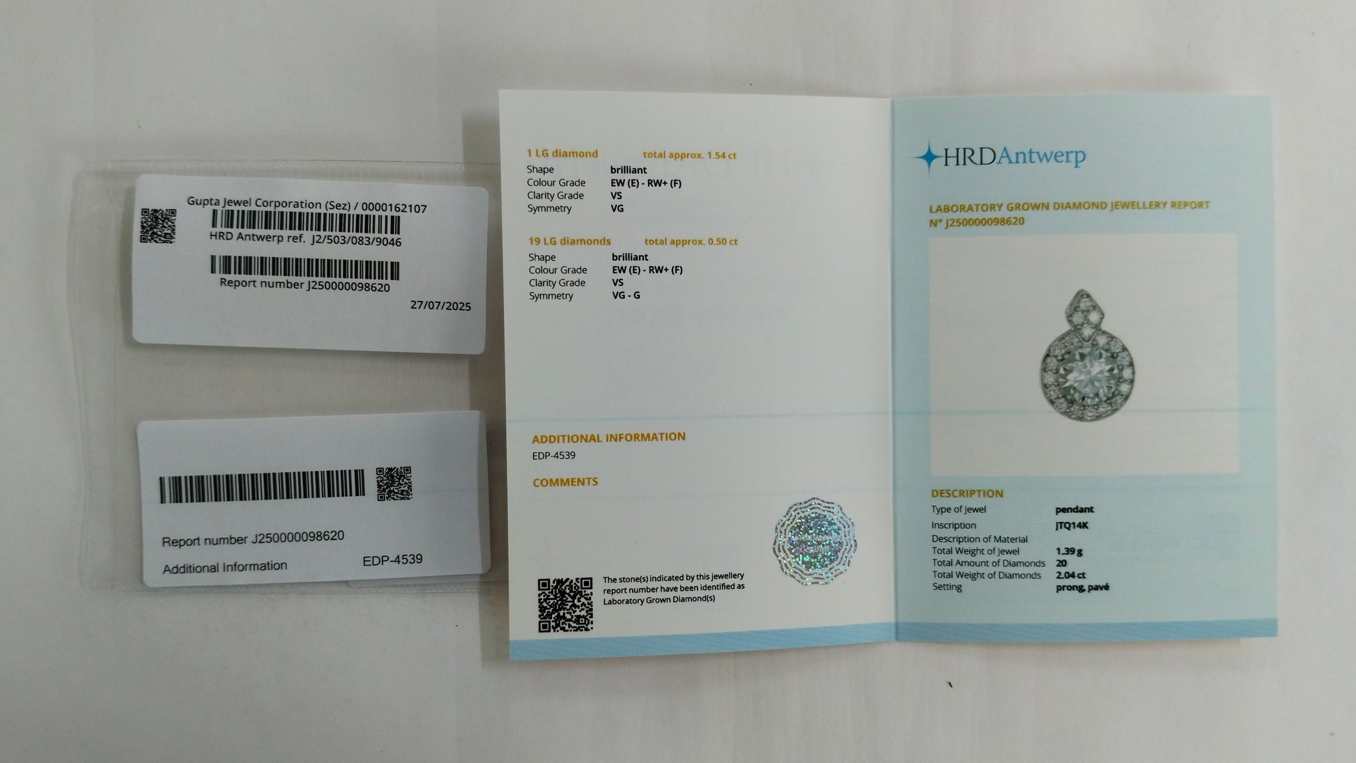 2.04 Carats Lab Grown Diamond 14K Gold Pendant
