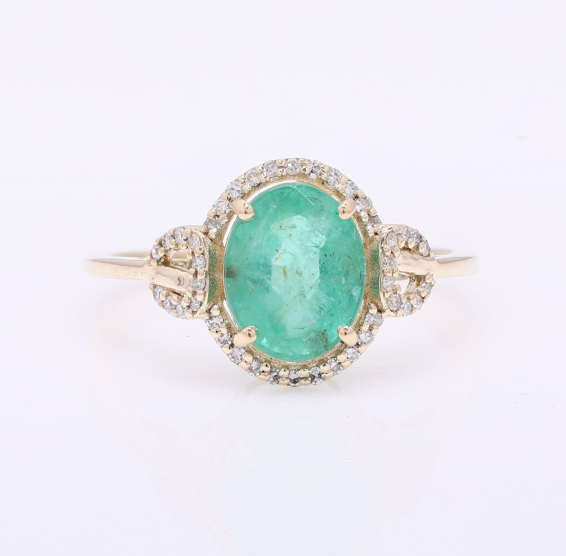 2.04 Ct Oval Mixed Cut Natural Emerald 14K Gold Ring