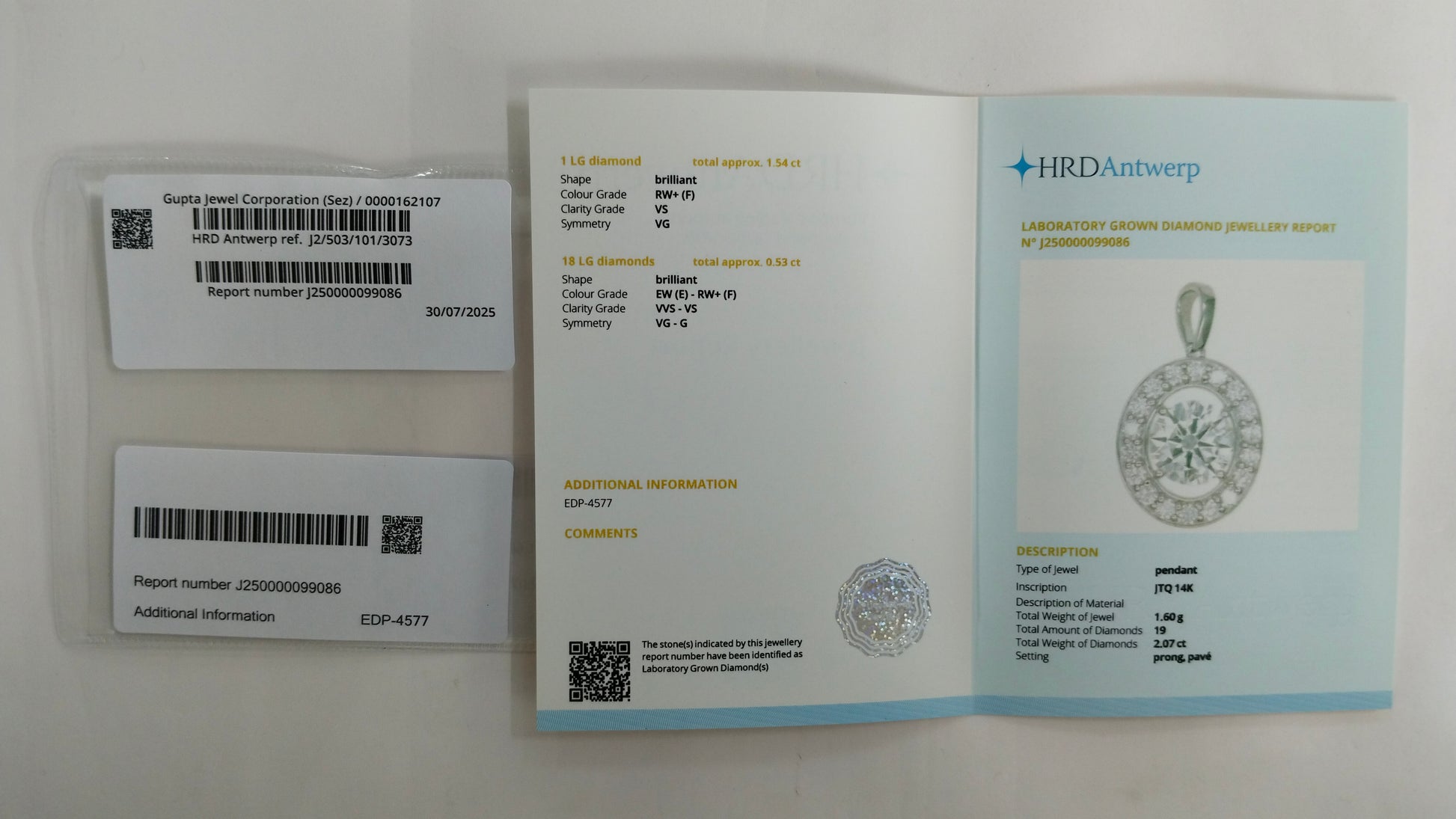 2.07-Carat Lab-Grown Diamond Round Brilliant Pendant - HRD Certified