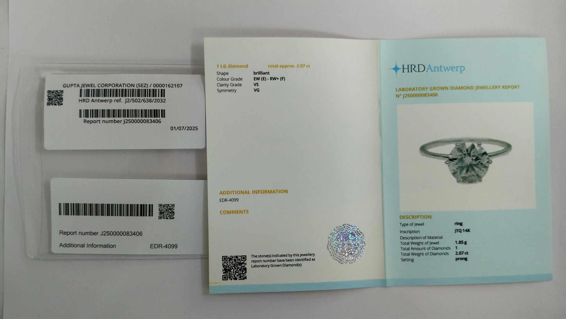 2.07-Carat Lab-Grown Diamond Round Brilliant Ring Ð HRD Certified