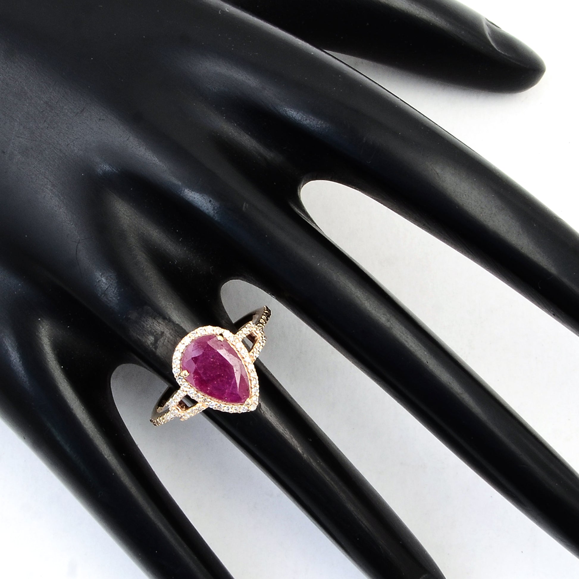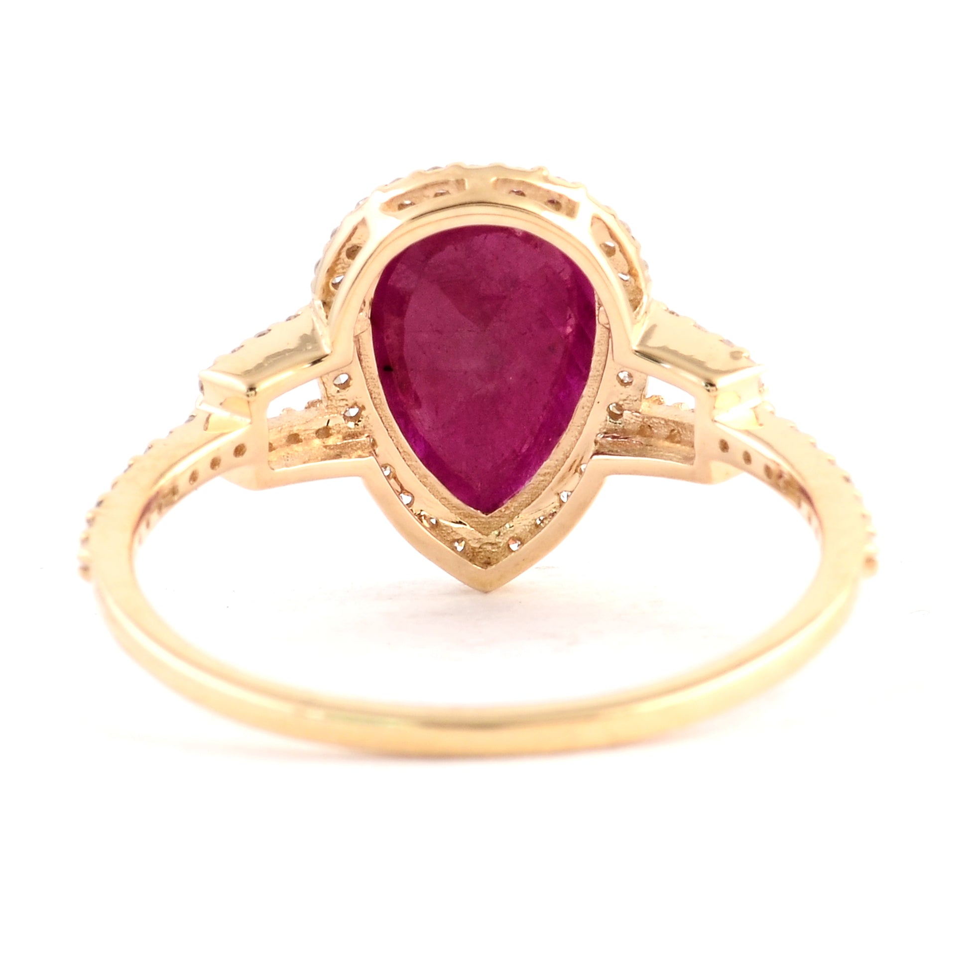 2.07 Ct Pear Mixed Cut Natural Corundum Ruby 14K Gold Ring