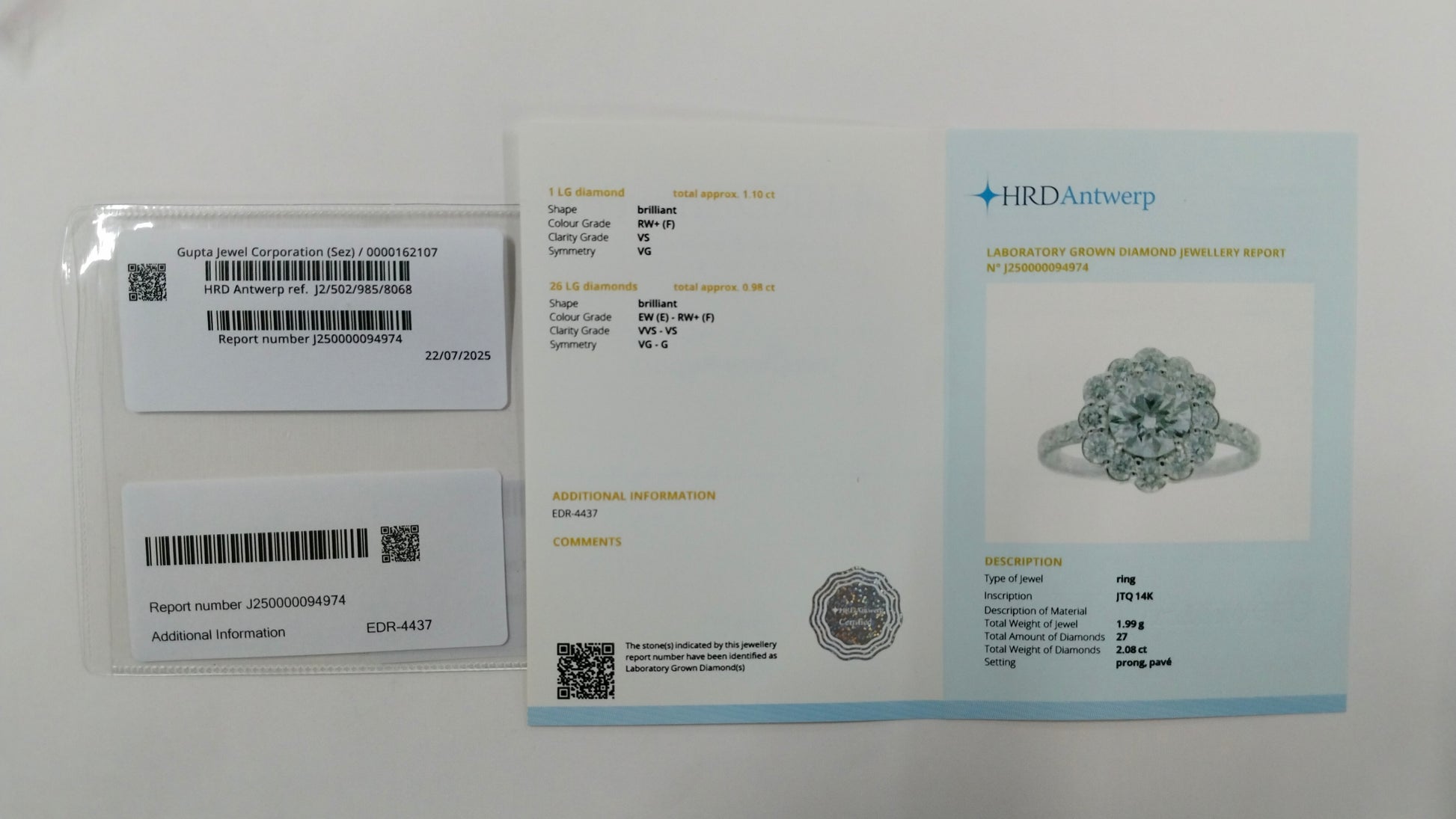 2.08-Carat Lab-Grown Diamond Round Brilliant Ring - HRD Certified