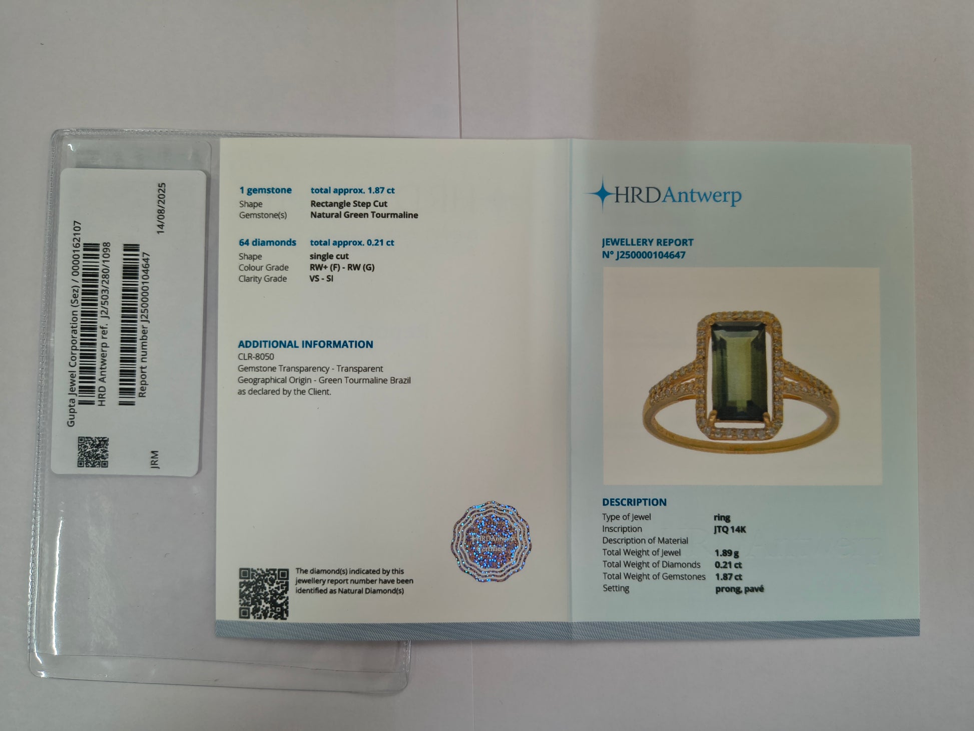 - Certificate Number J250000104647