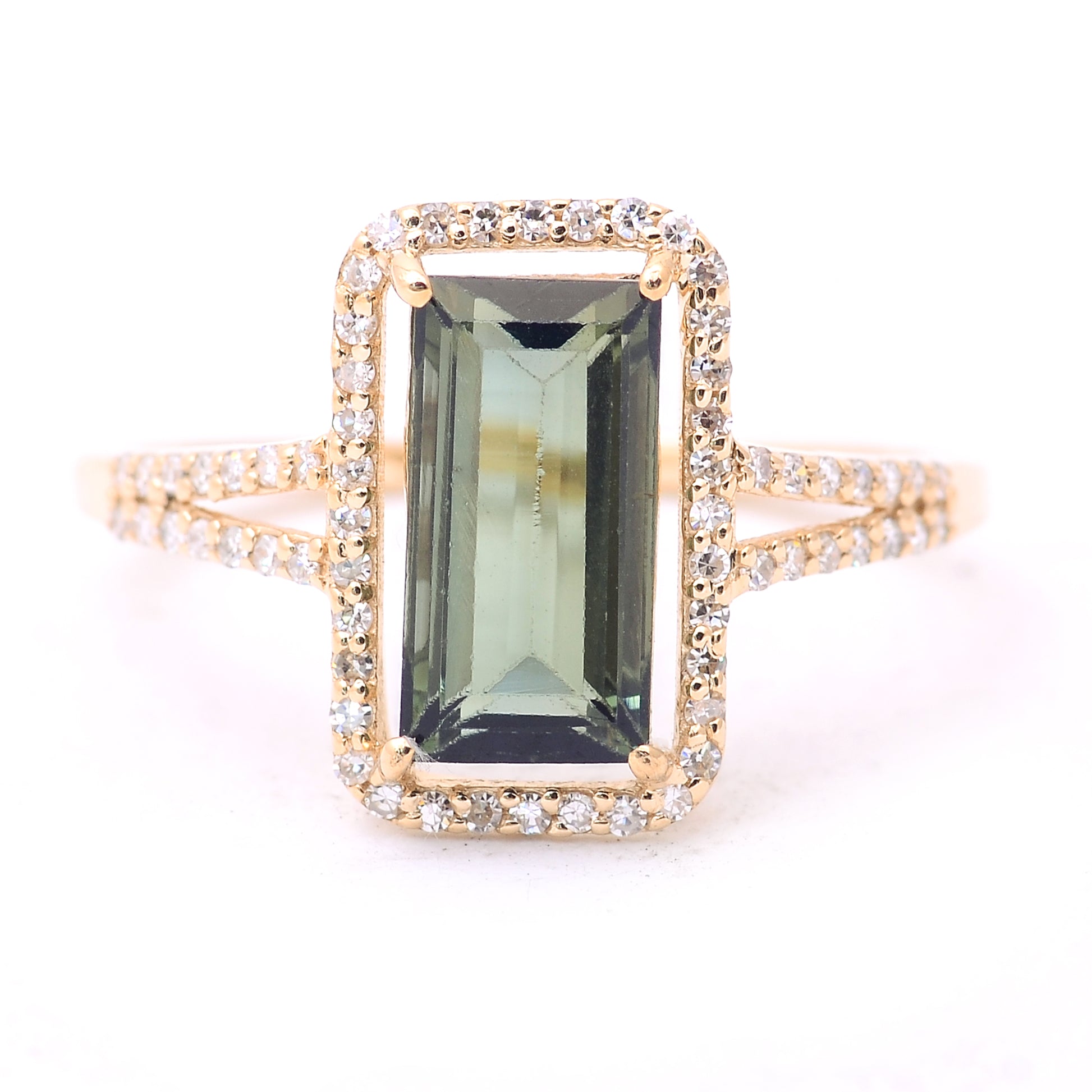 2.08 Ct Rectangle Step Cut Natural Tourmaline 14K Gold Ring