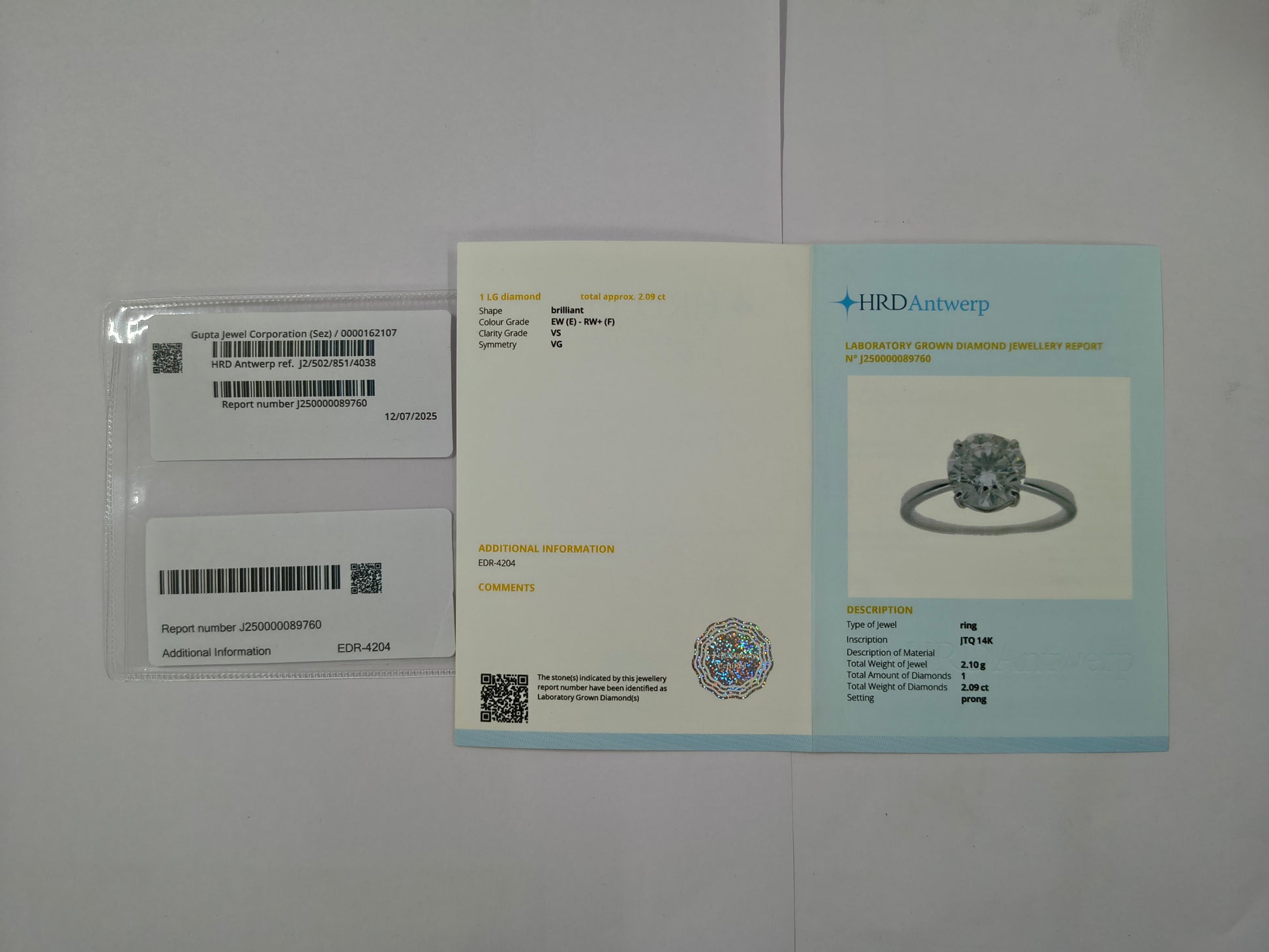 2.09-Carat Lab-Grown Diamond Round Brilliant Ring - HRD Certified