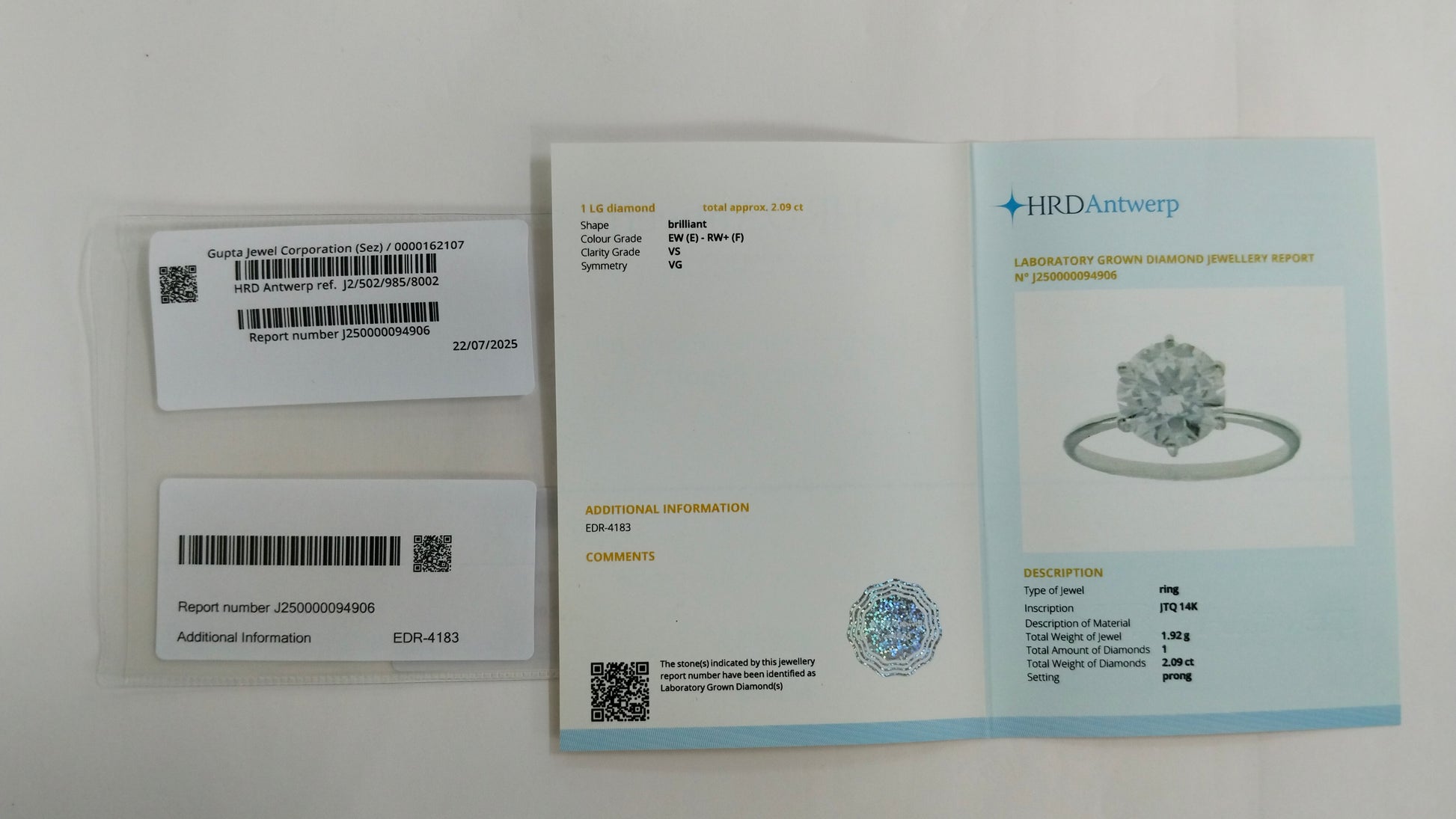 2.09-Carat Lab-Grown Diamond Round Brilliant Ring - HRD Certified
