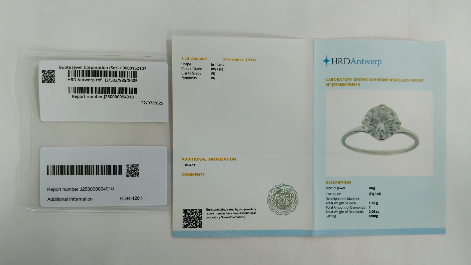 2.09-Carat Lab-Grown Diamond Round Brilliant Ring - HRD Certified