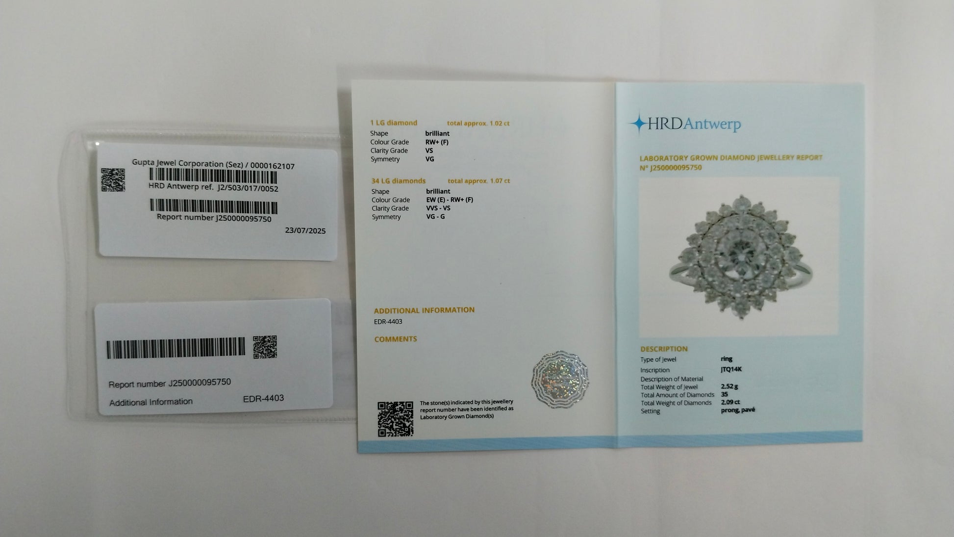 2.09-Carat Lab-Grown Diamond Round Brilliant Ring - HRD Certified
