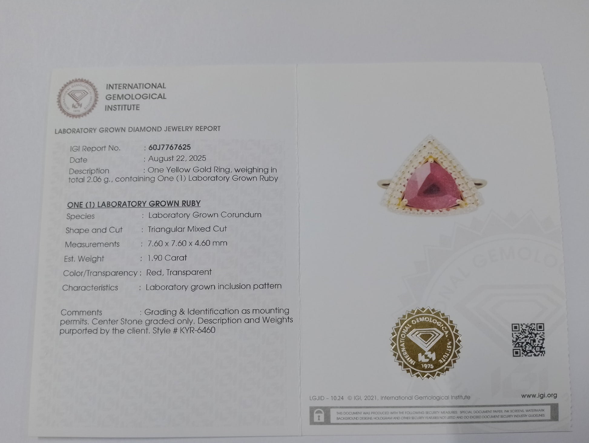 2.09 Ct Triangular Mixed Cut Lab Grown Ruby 14K Gold Ring