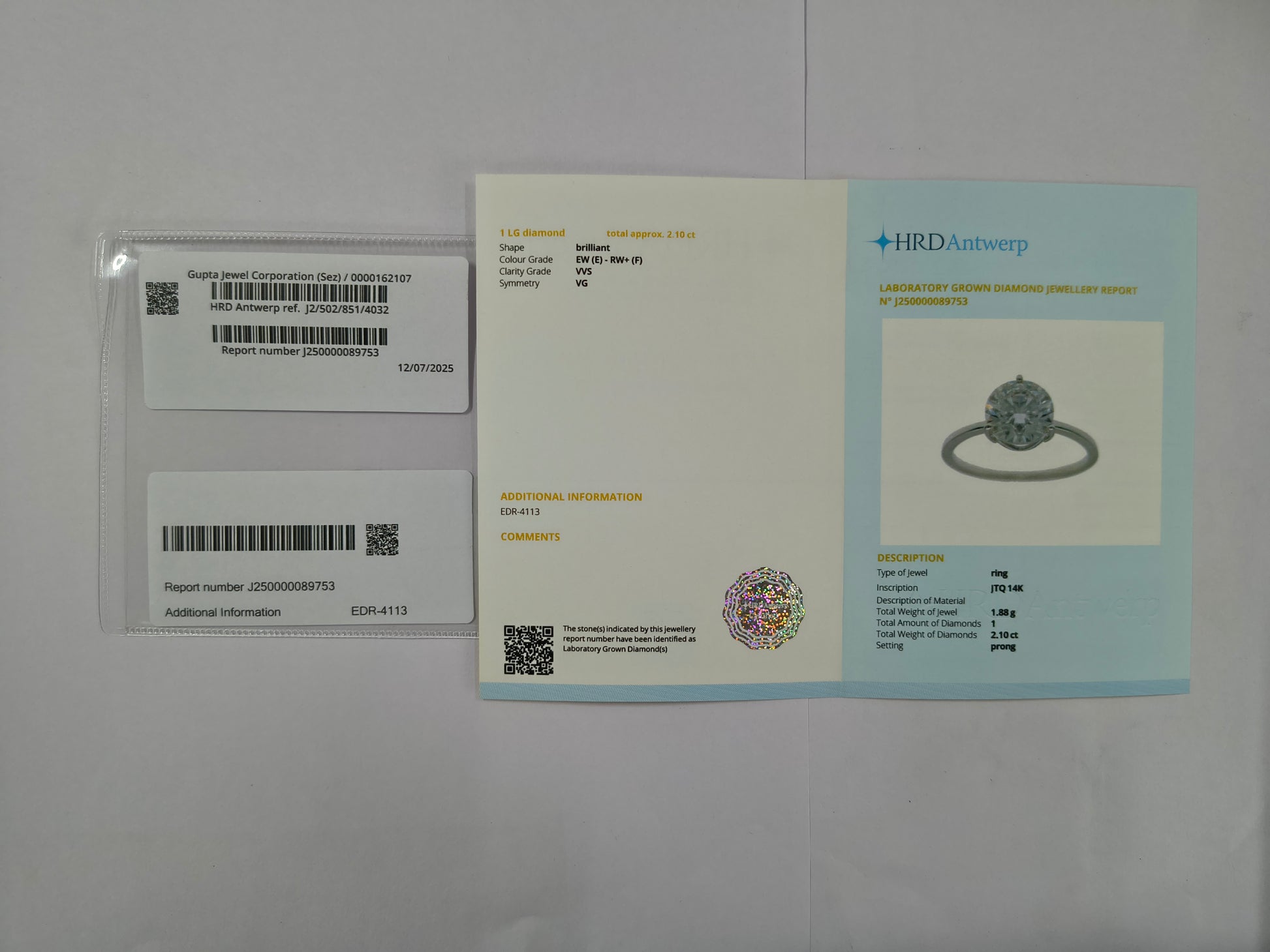 2.10-Carat Lab-Grown Diamond Round Brilliant Ring - HRD Certified