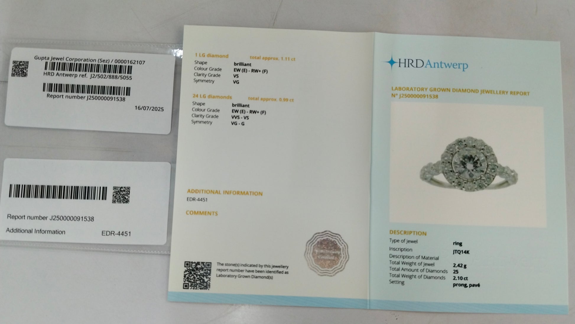 2.10-Carat Lab-Grown Diamond Round Brilliant Ring - HRD Certified