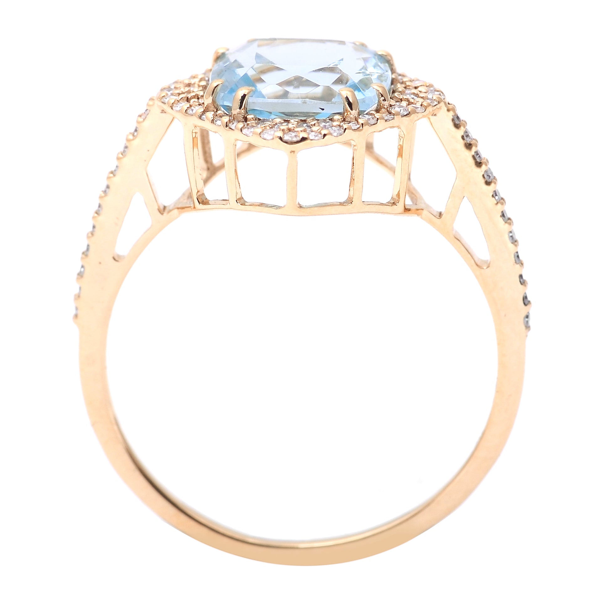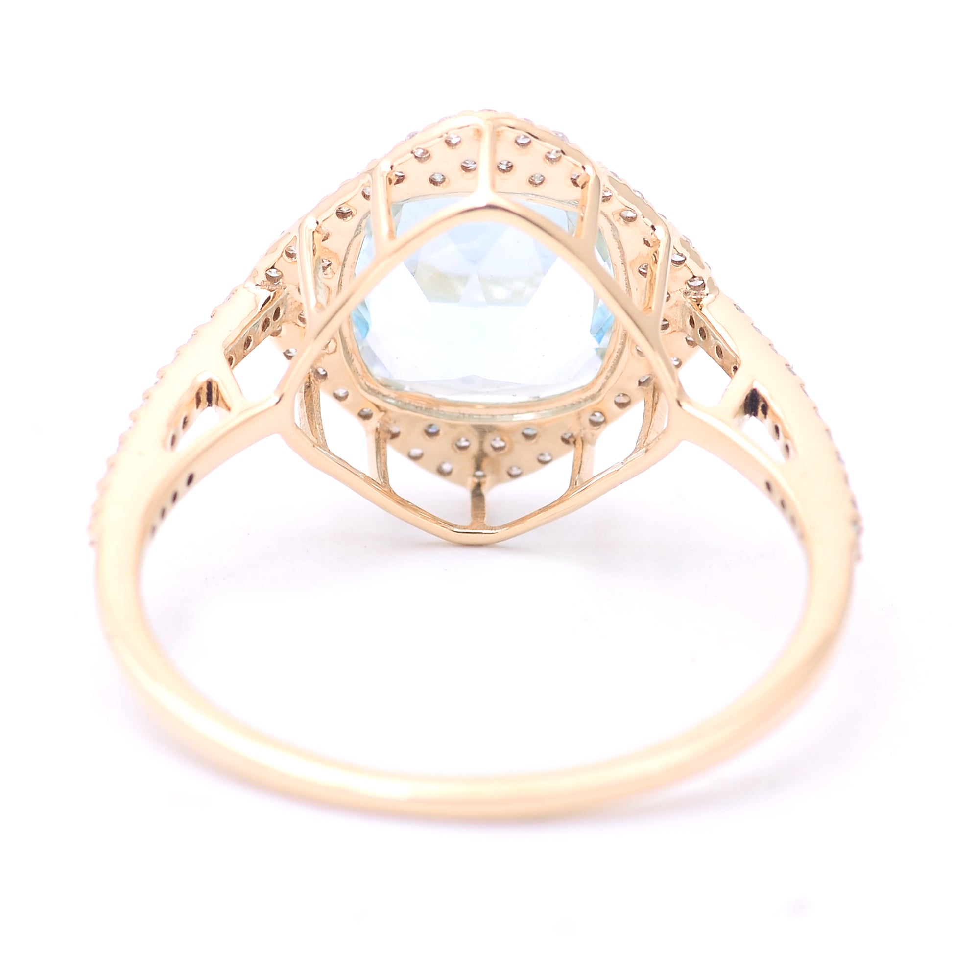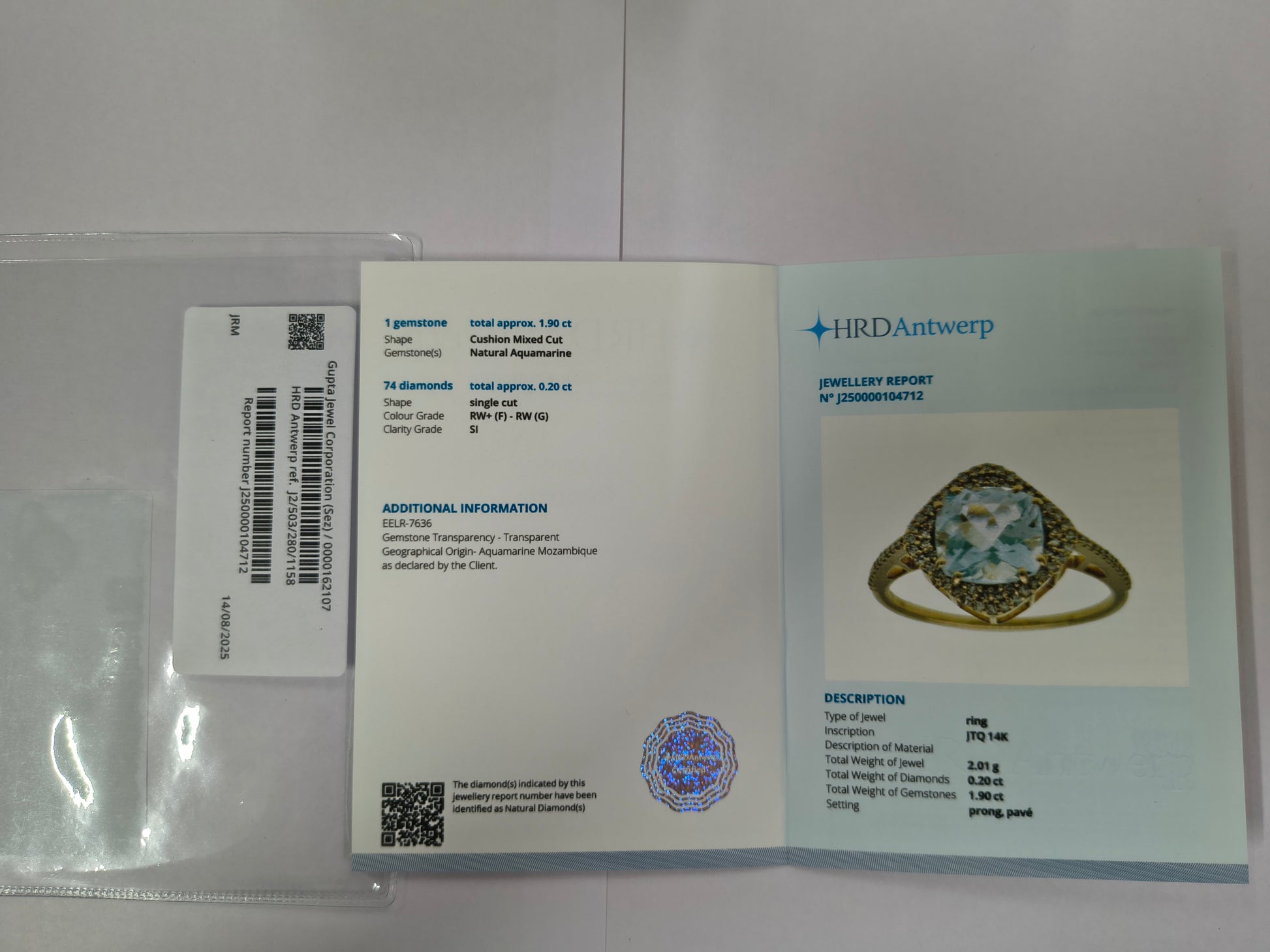 2.10 Ct Cushion Mixed Cut Natural Aquamarine 14K Gold Ring