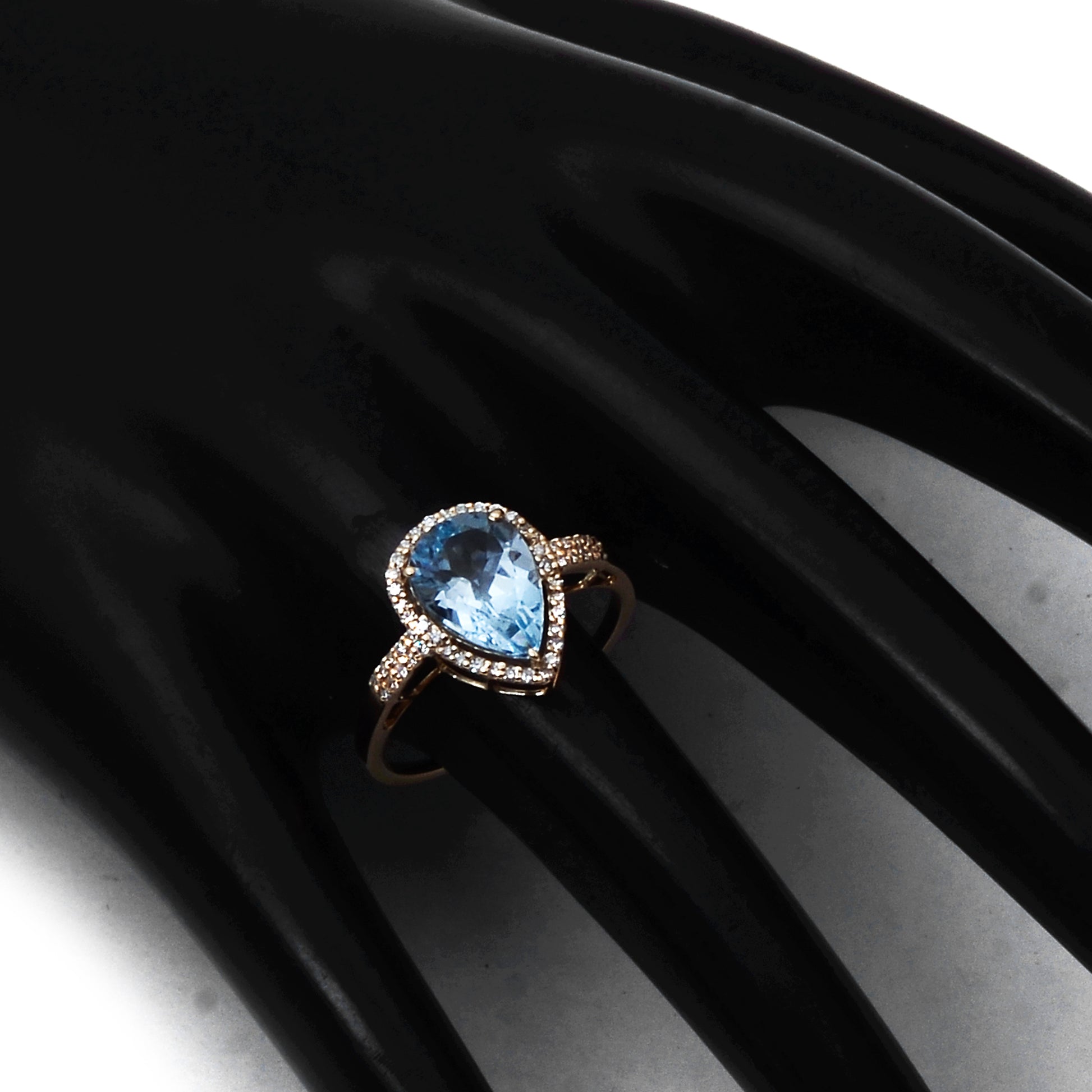2.10 Ct Pear Mixed Cut Natural Aquamarine 14K Gold Ring