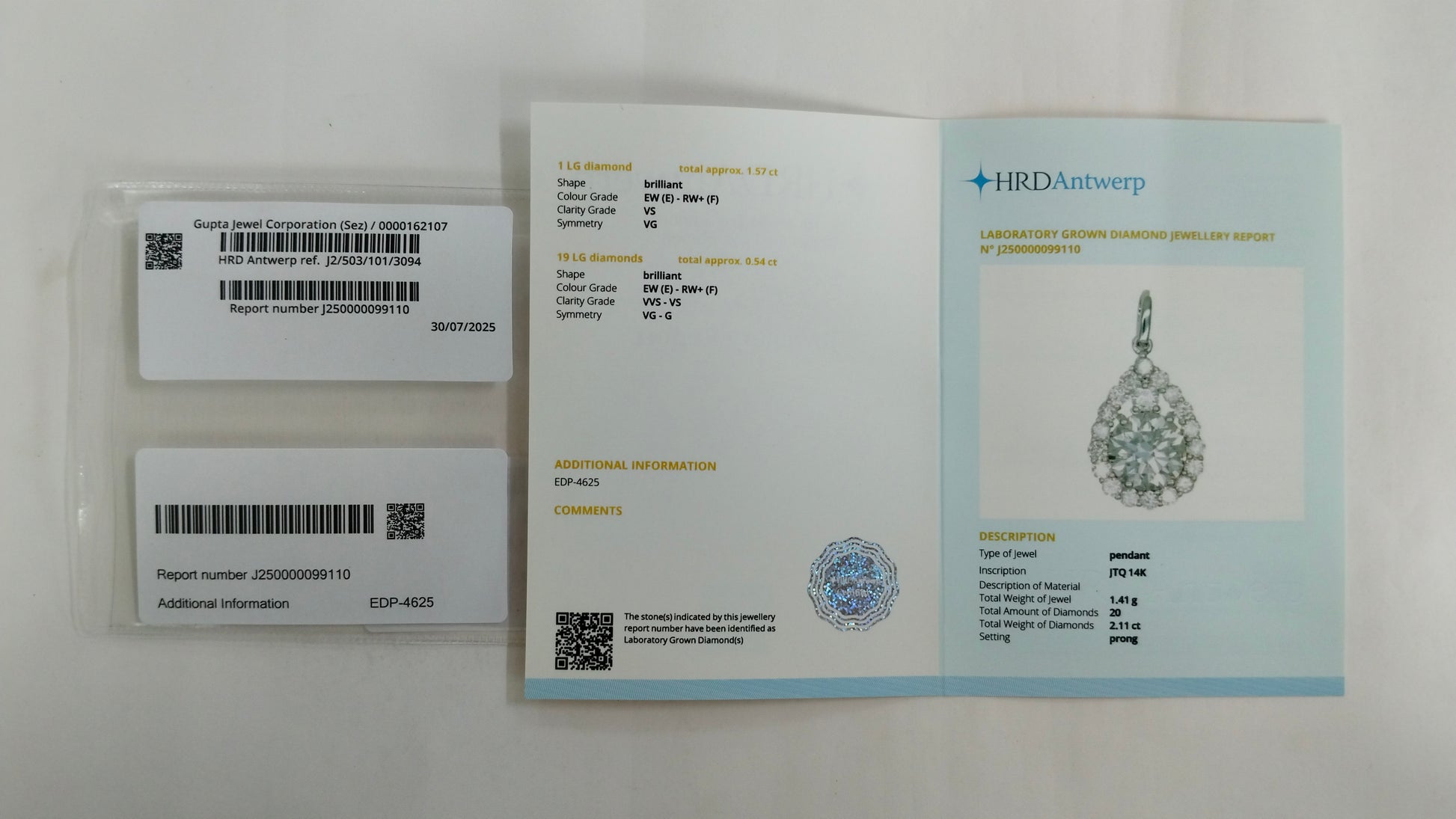2.11-Carat Lab-Grown Diamond Round Brilliant Pendant - HRD Certified