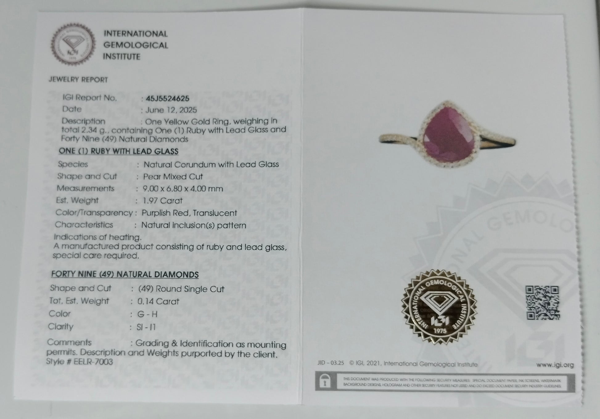 2.11 Ct Pear Mixed Cut Natural Corundum Ruby 14K Gold Ring