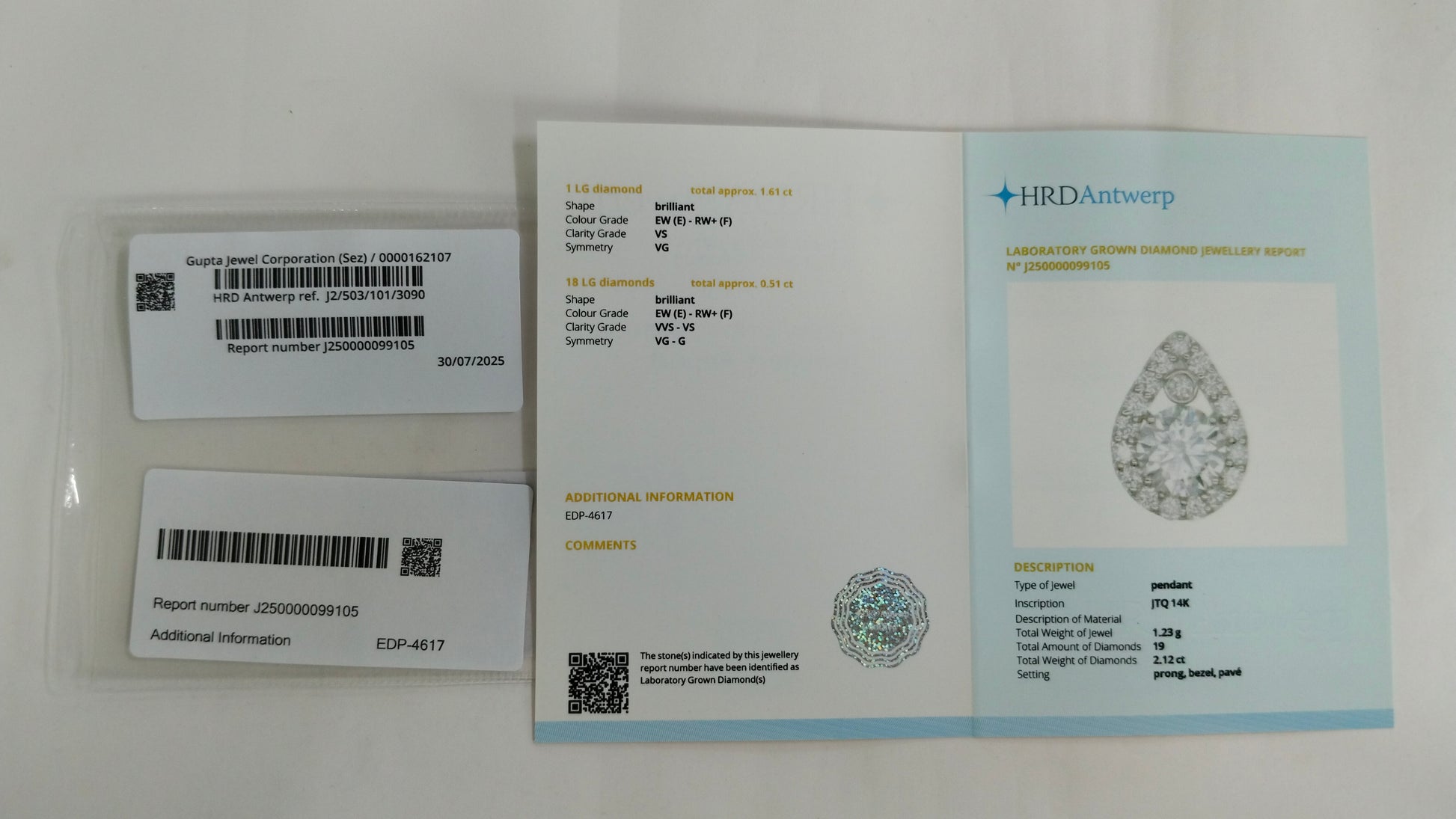 2.12 Carats Lab Grown Diamond 14K Gold Pendant