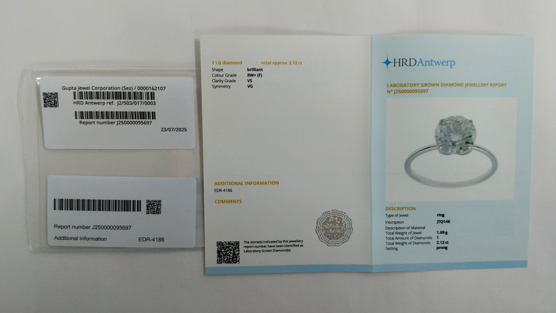 2.12-Carat Lab-Grown Diamond Round Brilliant Ring - HRD Certified