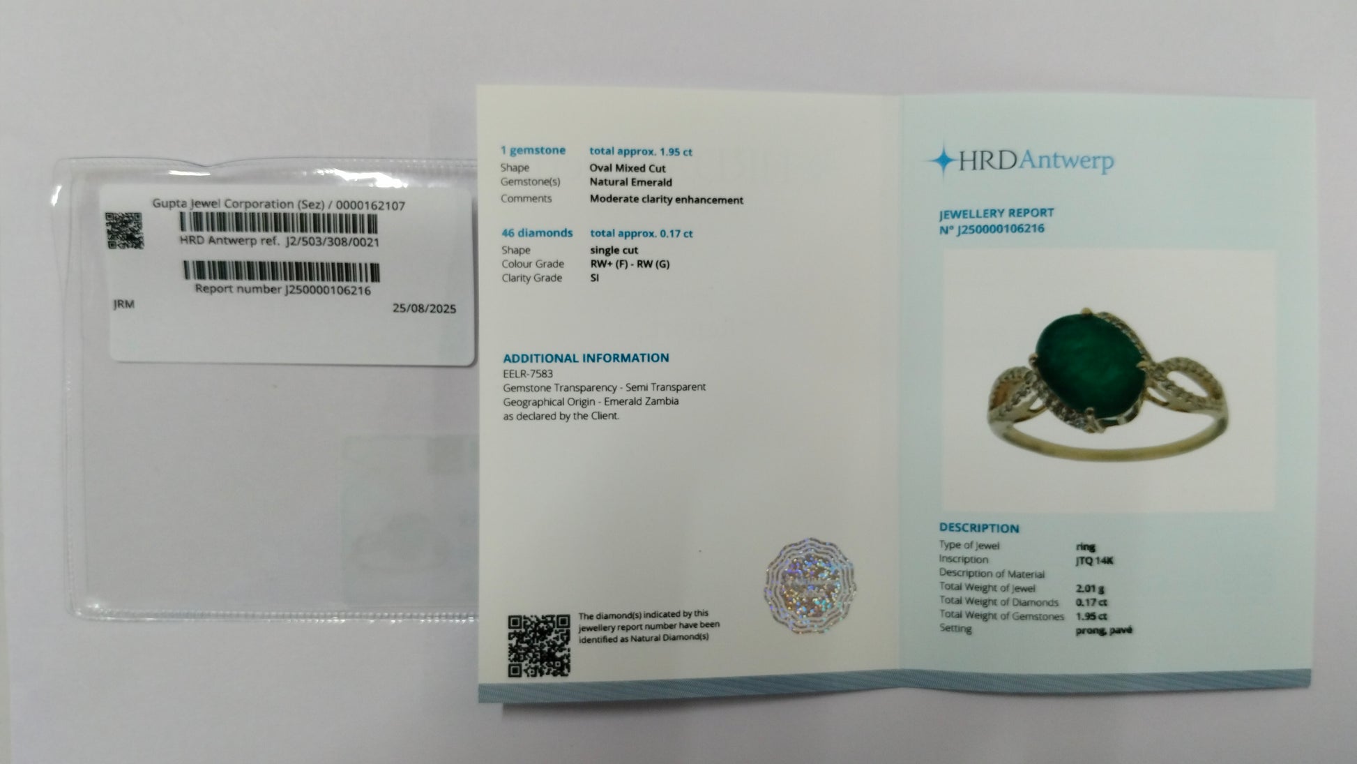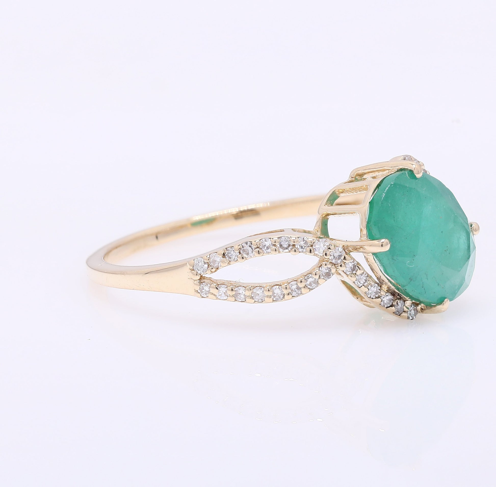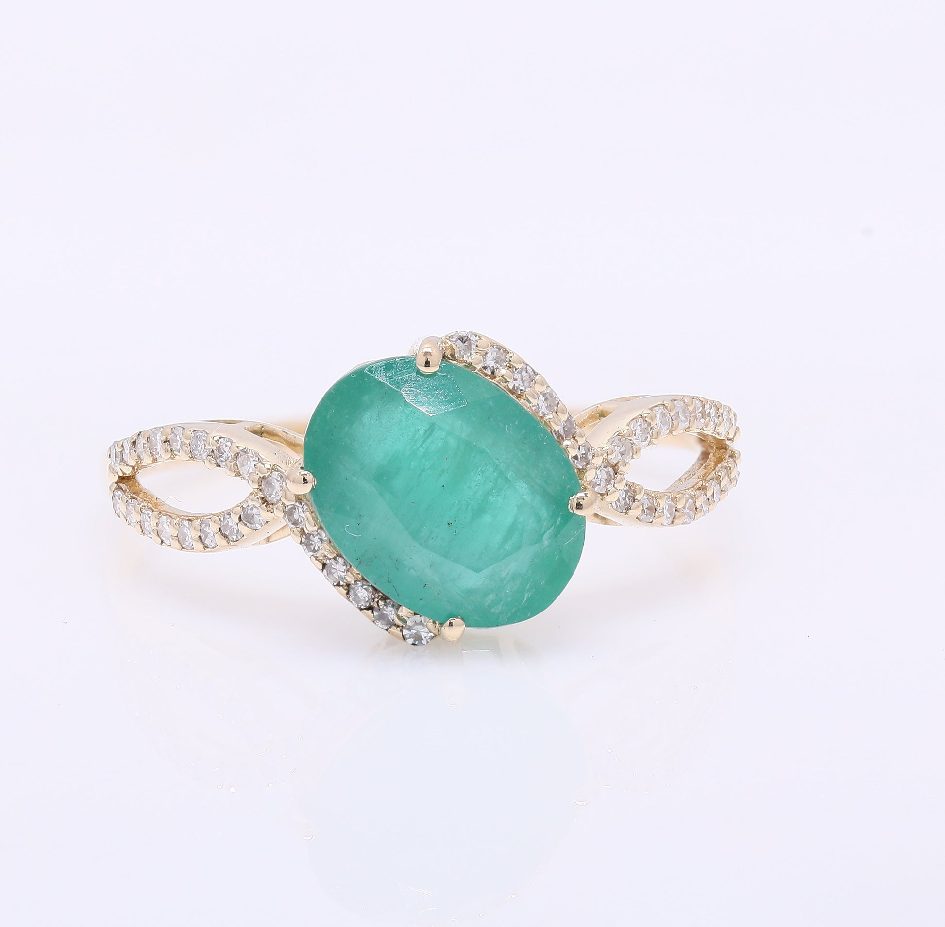 2.12 Ct Oval Mixed Cut Natural Emerald 14K Gold Ring