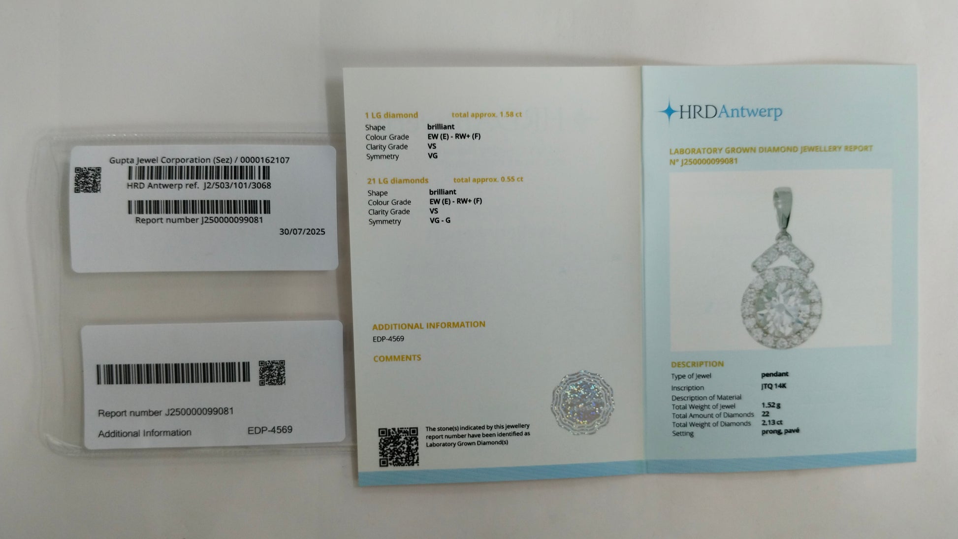 2.13-Carat Lab-Grown Diamond Round Brilliant Pendant - HRD Certified