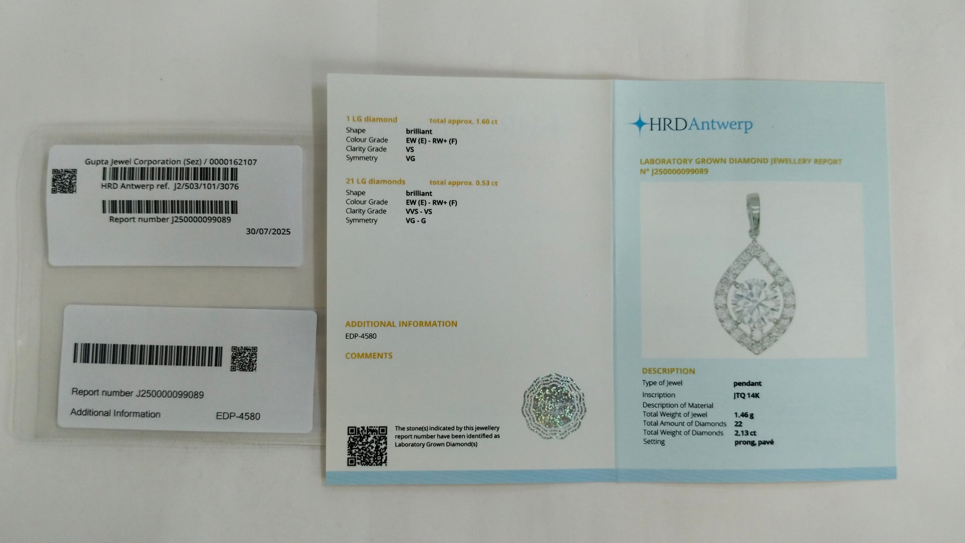 2.13-Carat Lab-Grown Diamond Round Brilliant Pendant - HRD Certified