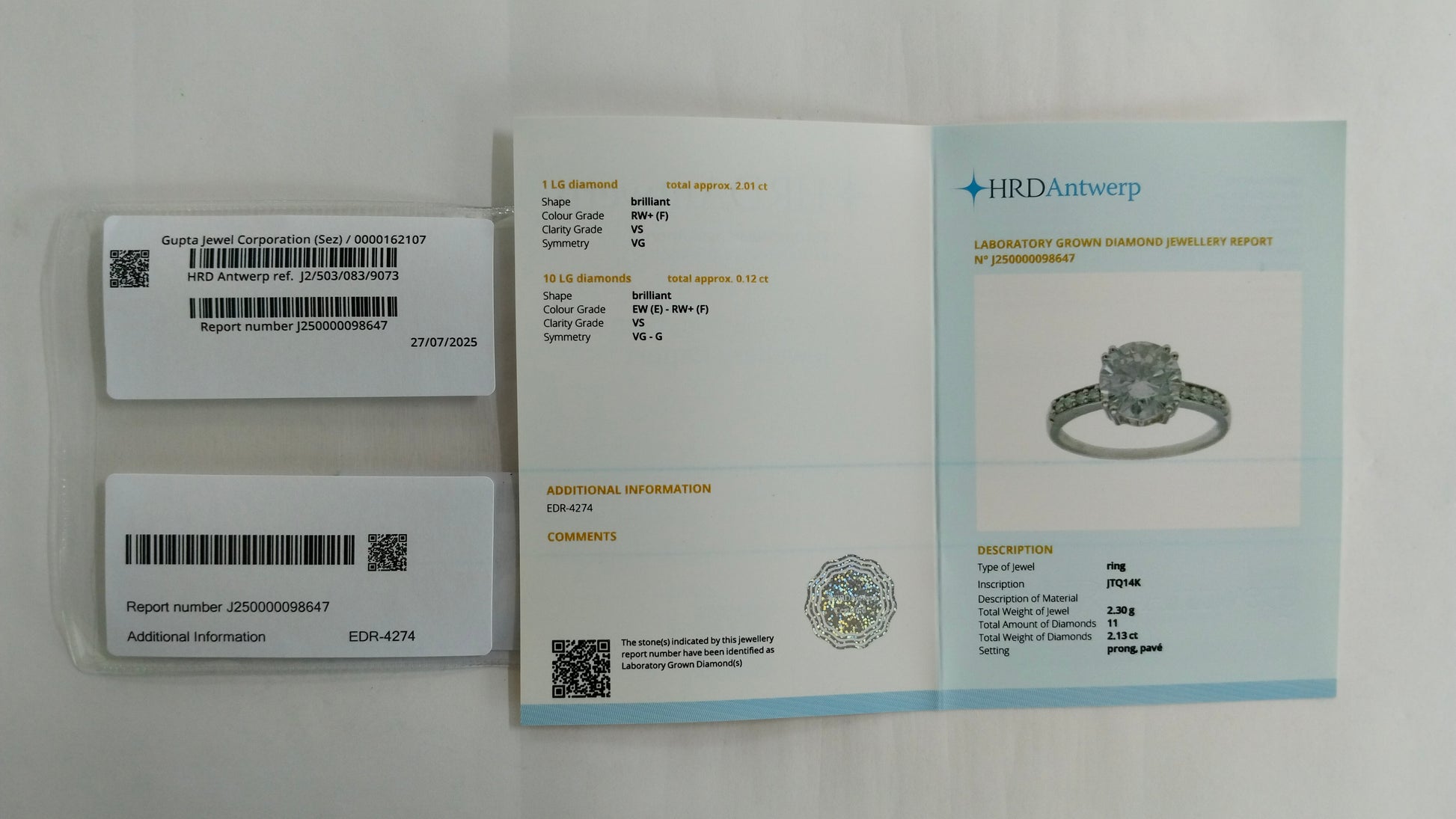 2.13-Carat Lab-Grown Diamond Round Brilliant Ring - HRD Certified