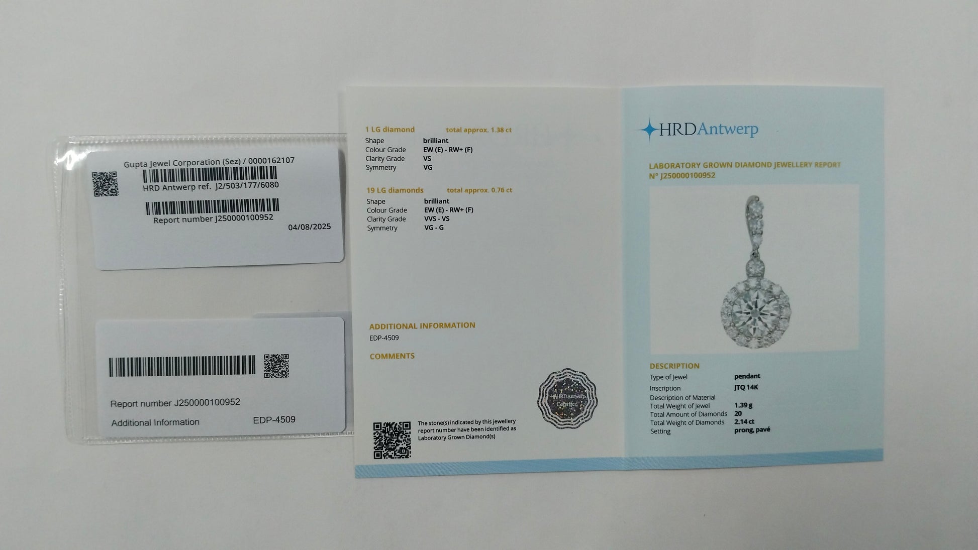 2.14-Carat Lab-Grown Diamond Round Cut Brilliant Pendant ? HRD Certified