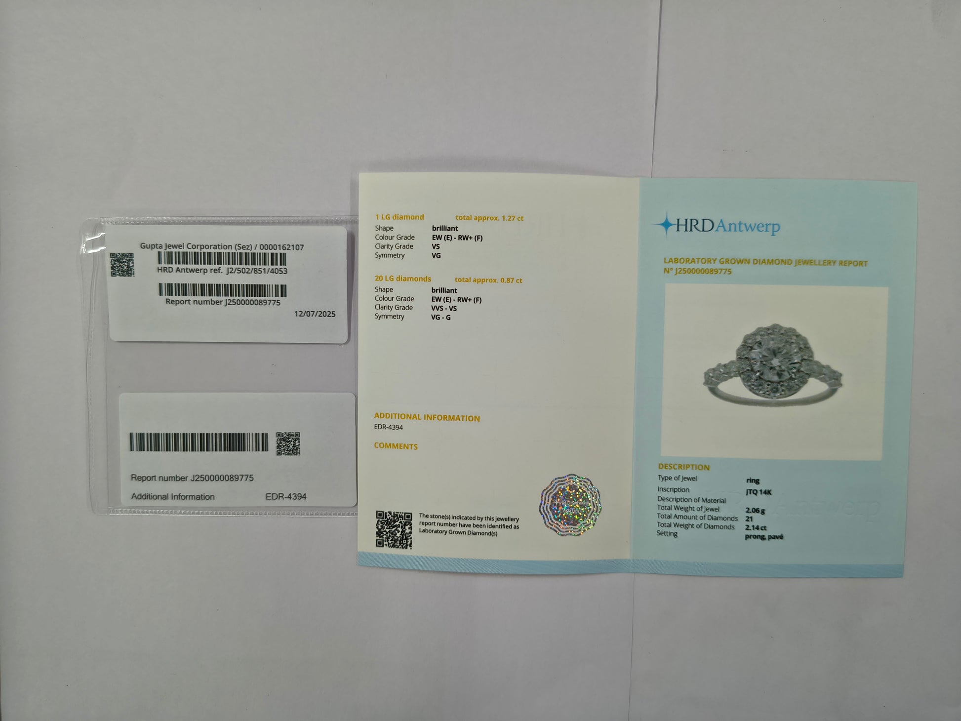 2.14-Carat Lab-Grown Diamond Round Brilliant Ring - HRD Certified
