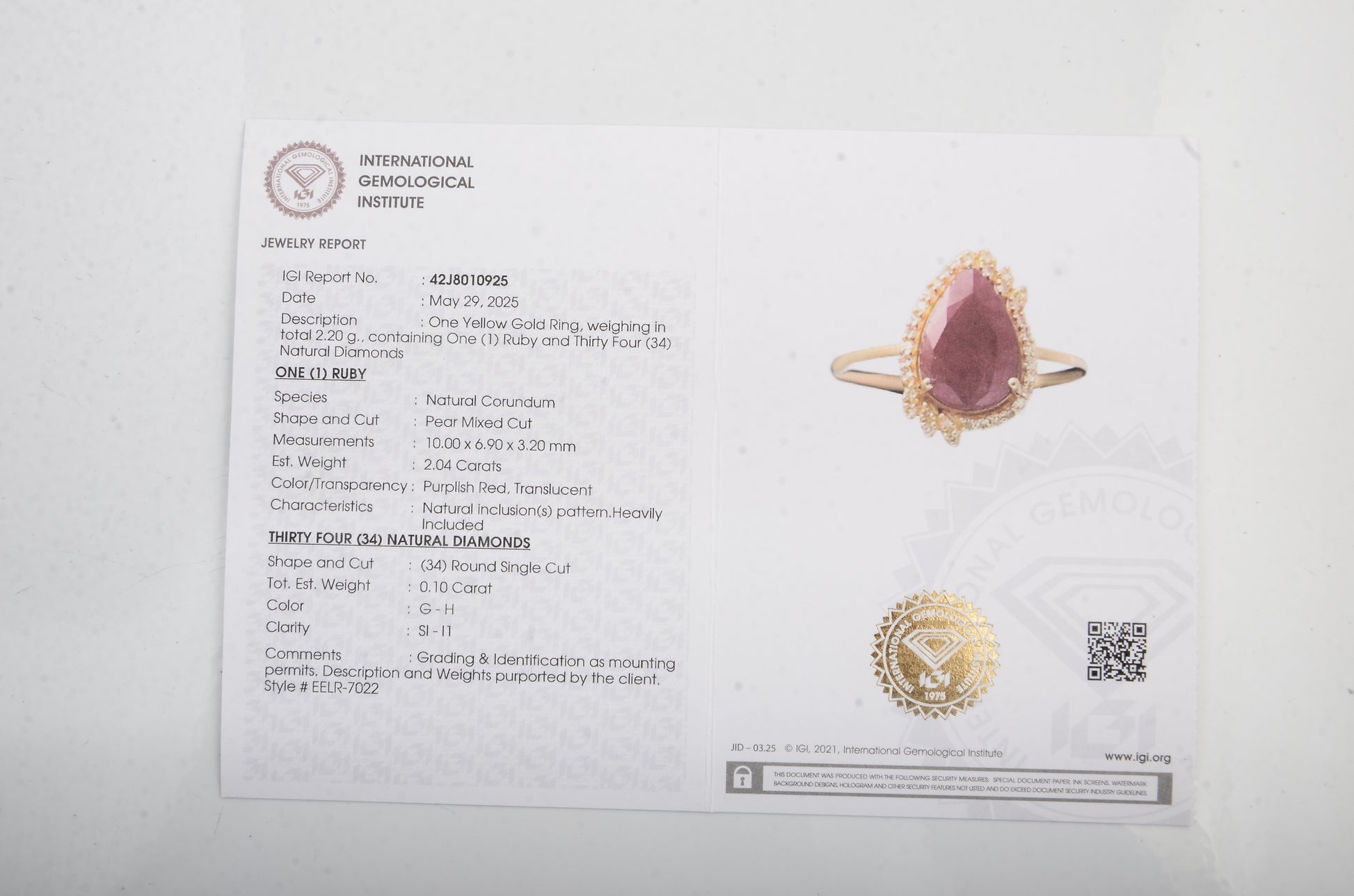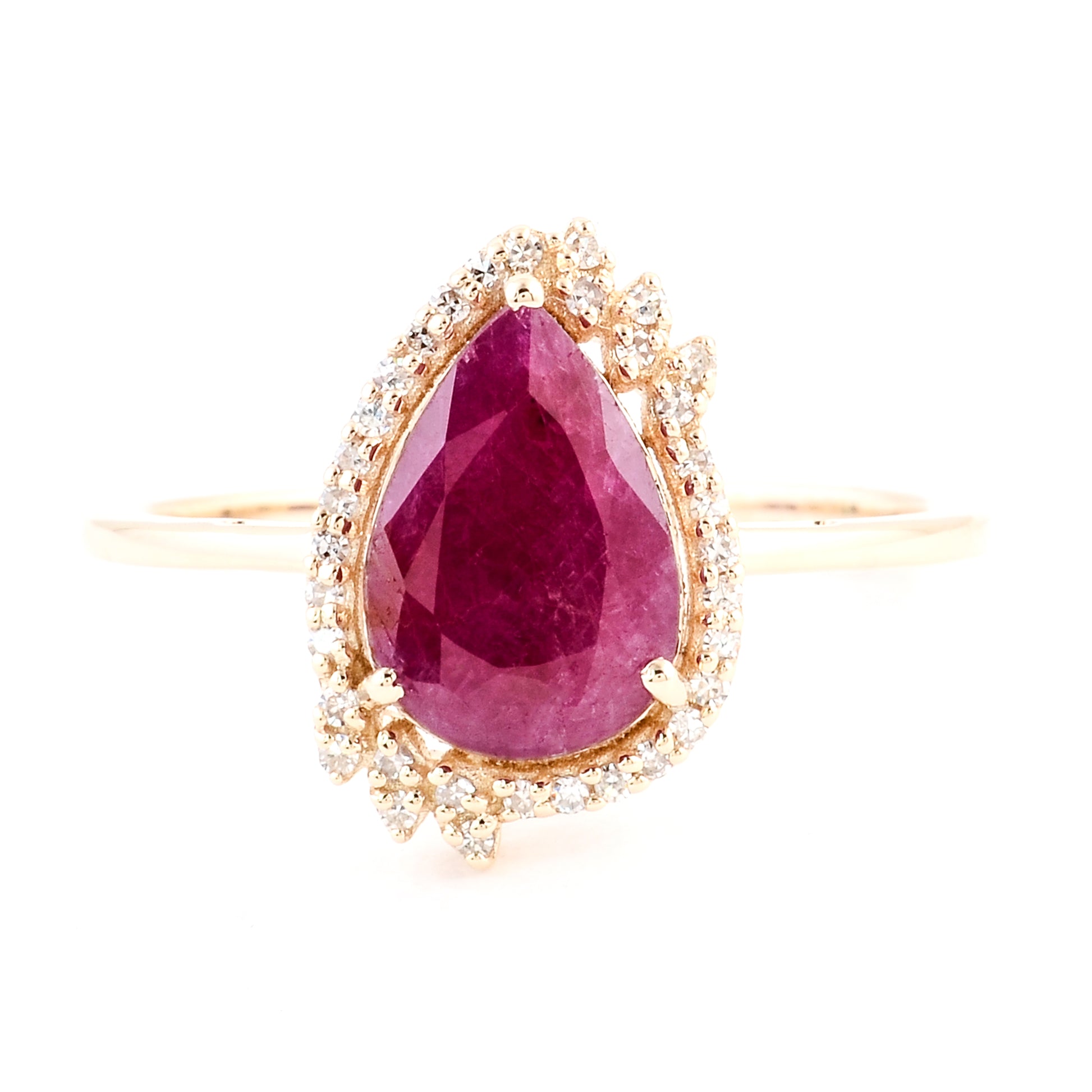 2.14 Ct Pear Mixed Cut Natural Corundum Ruby 14K Gold Ring