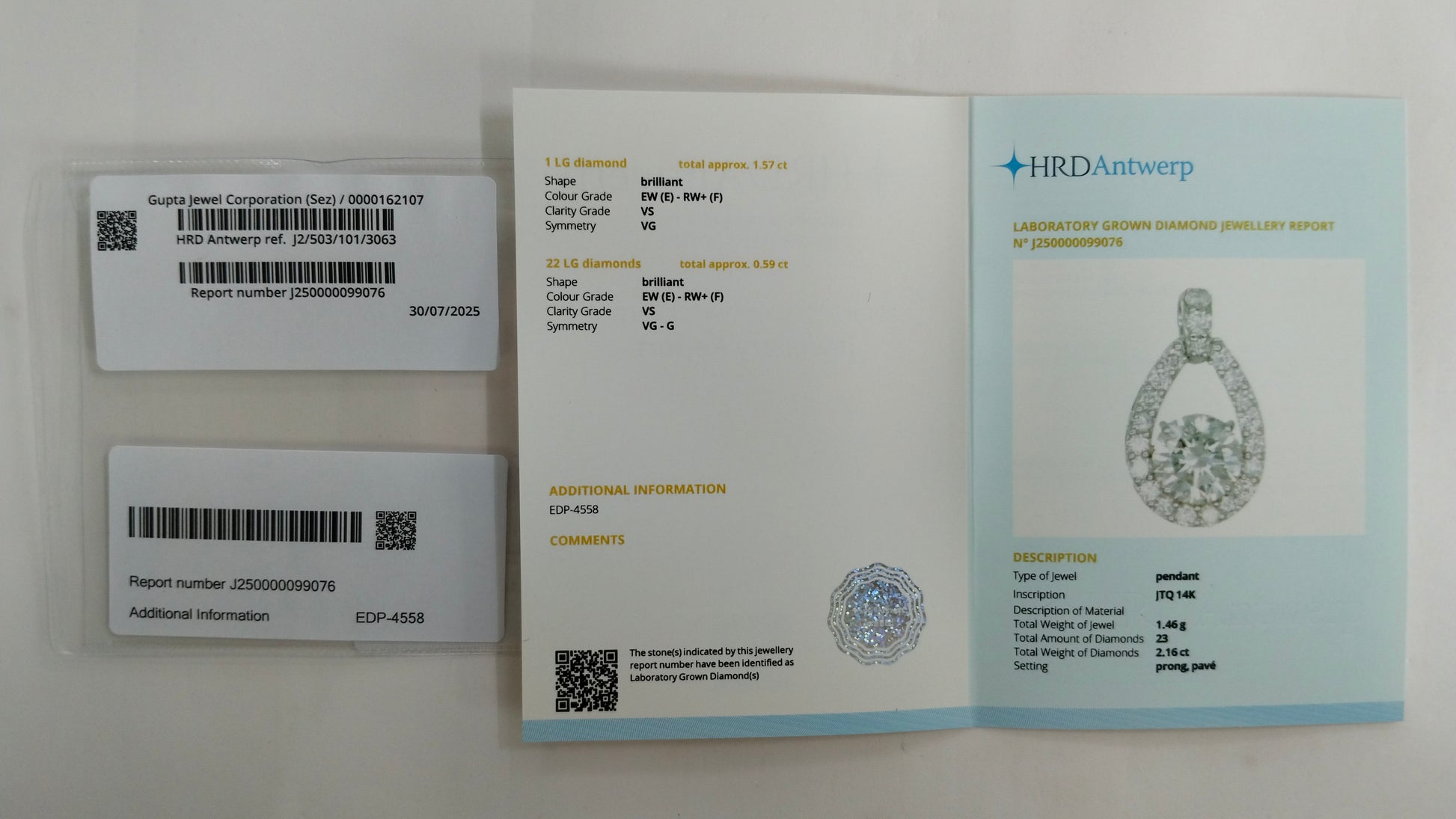 2.16-Carat Lab-Grown Diamond Round Brilliant Pendant - HRD Certified