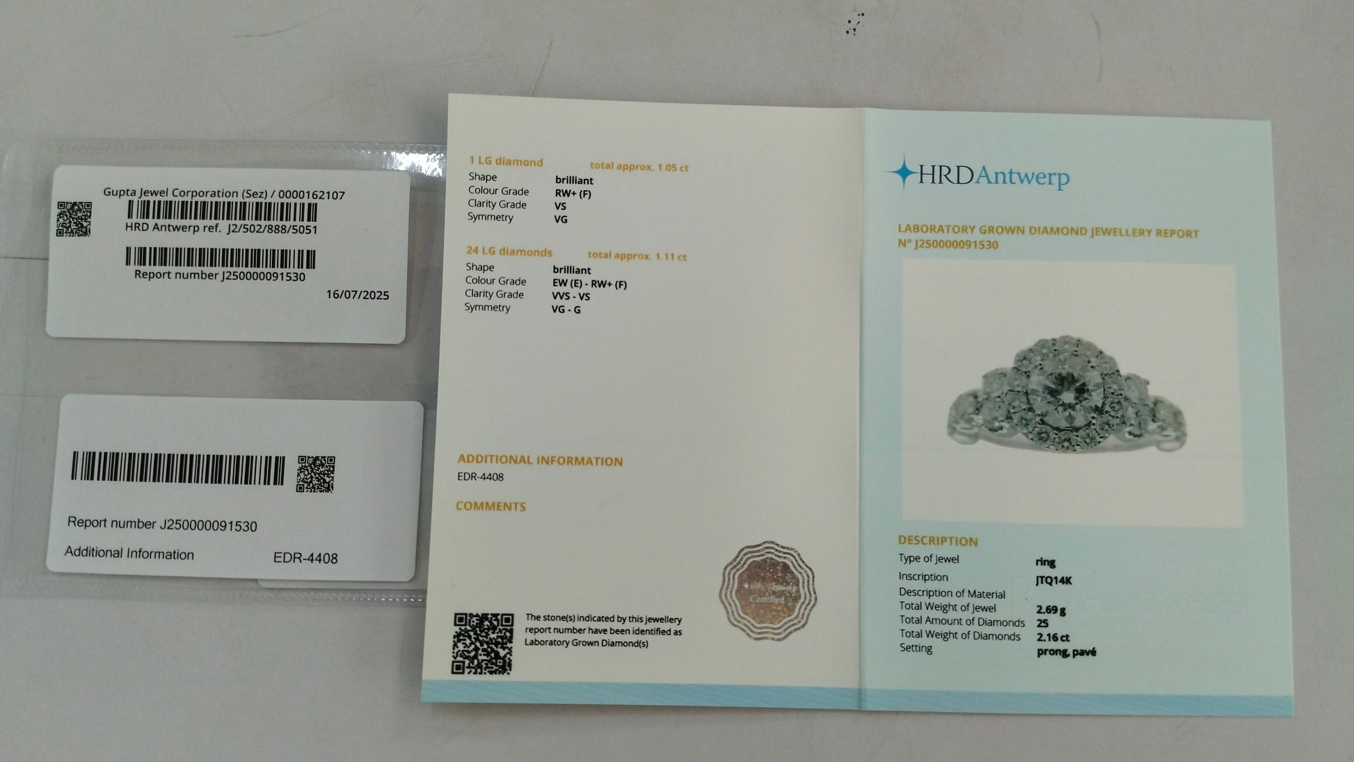 2.16-Carat Lab-Grown Diamond Round Brilliant Ring - HRD Certified