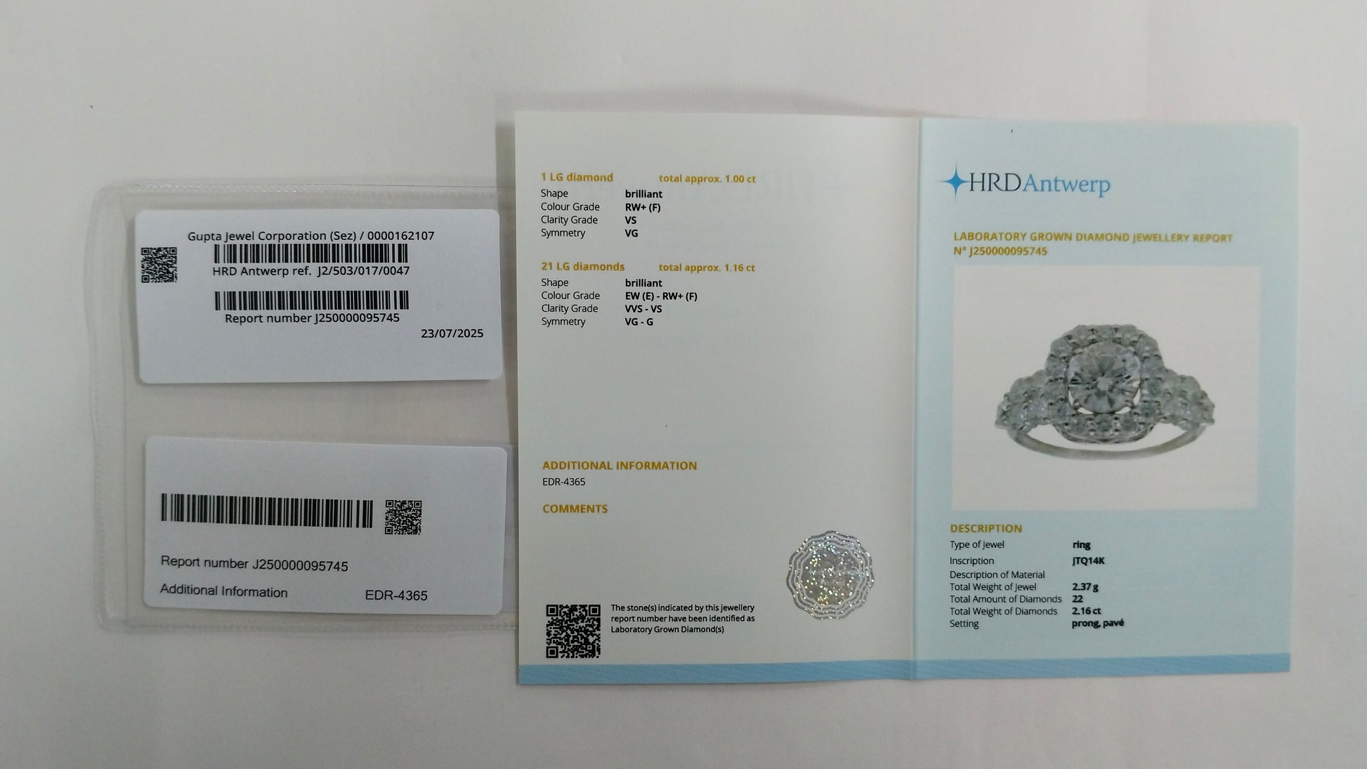2.16-Carat Lab-Grown Diamond Round Brilliant Ring - HRD Certified