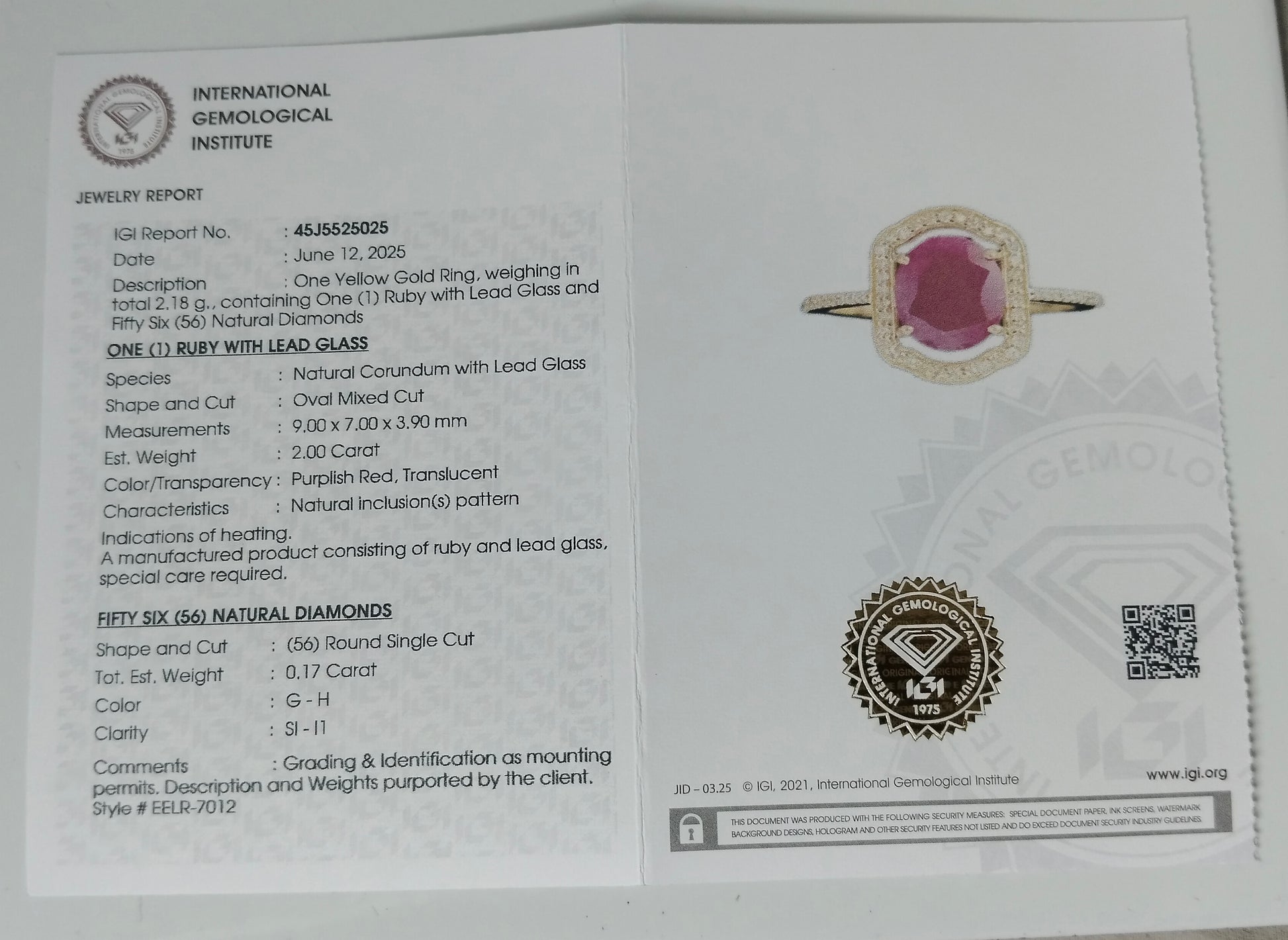 2.17 Total Carat Natural Corundum Ruby 14K Gold Ring