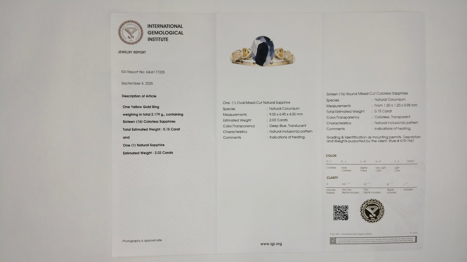 - Lab Name: International Gemological Institute (IGI)