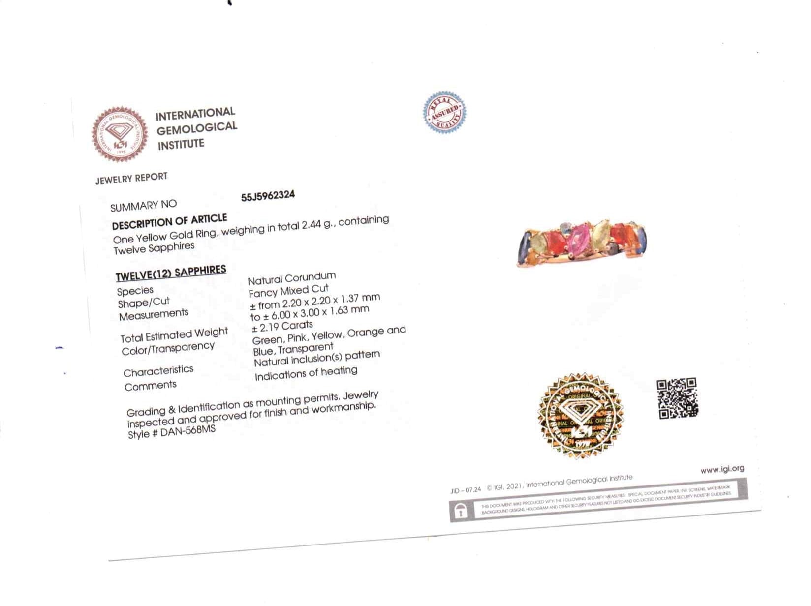 2.19 Total Carat Natural Corundum Multi Sapphire 14K Gold Ring