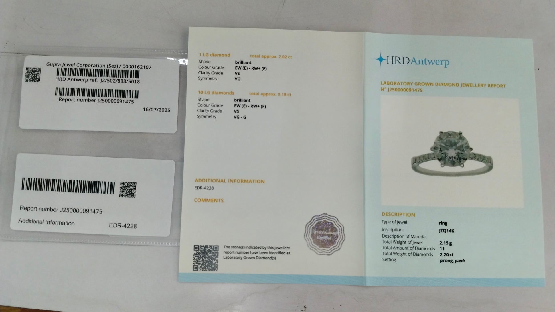 2.20-Carat Lab-Grown Diamond Round Brilliant Ring - HRD Certified