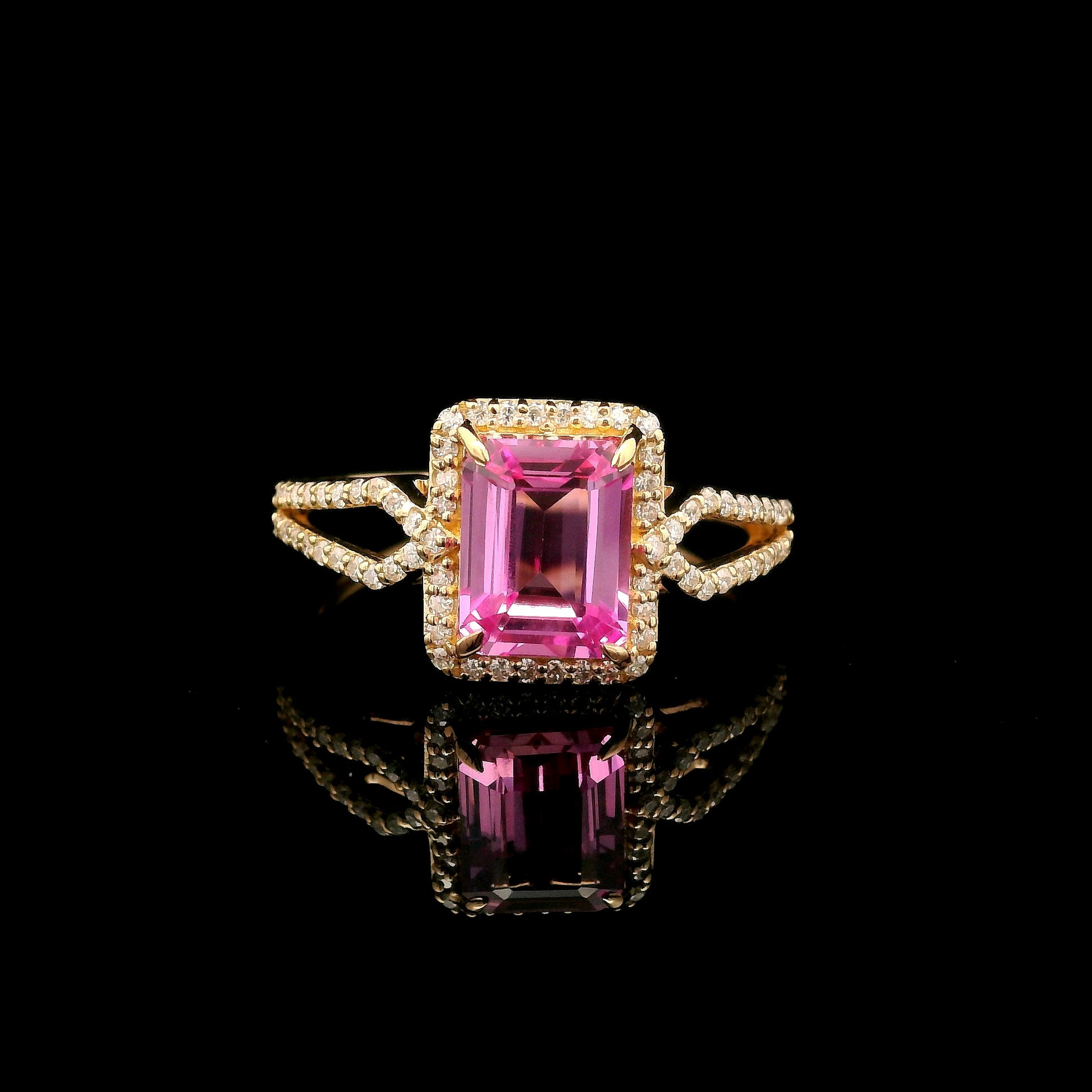 2.20 Ct Emerald Cut Lab Grown Pink Sapphire 14K Gold Ring