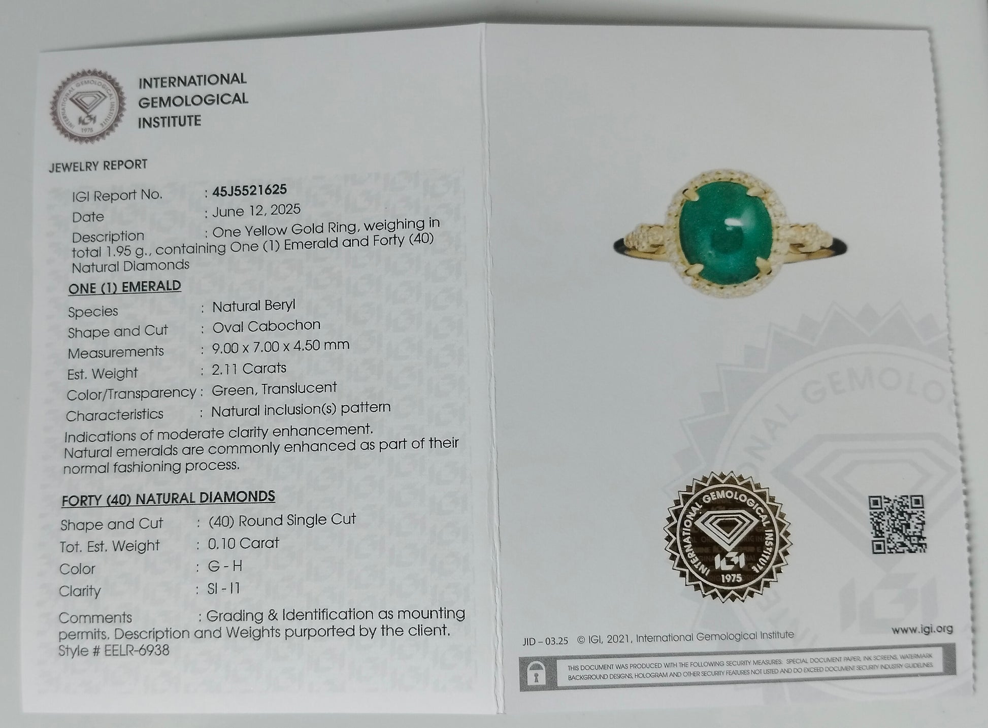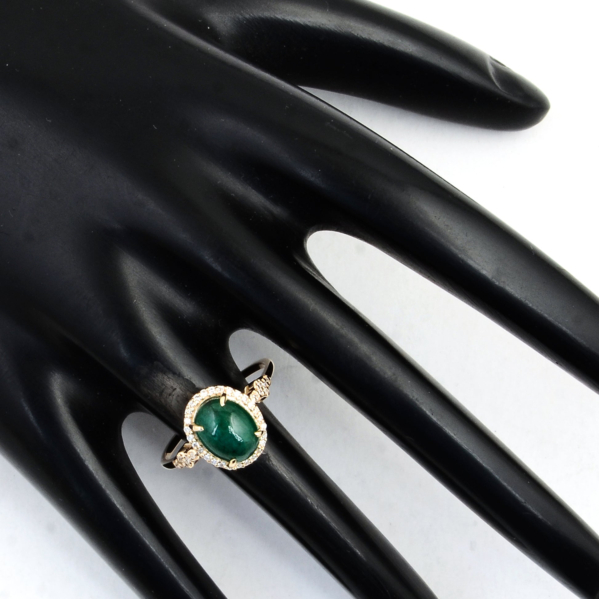 2.21 Ct Oval Cabochon Natural Beryl Emerald 14K Gold Ring