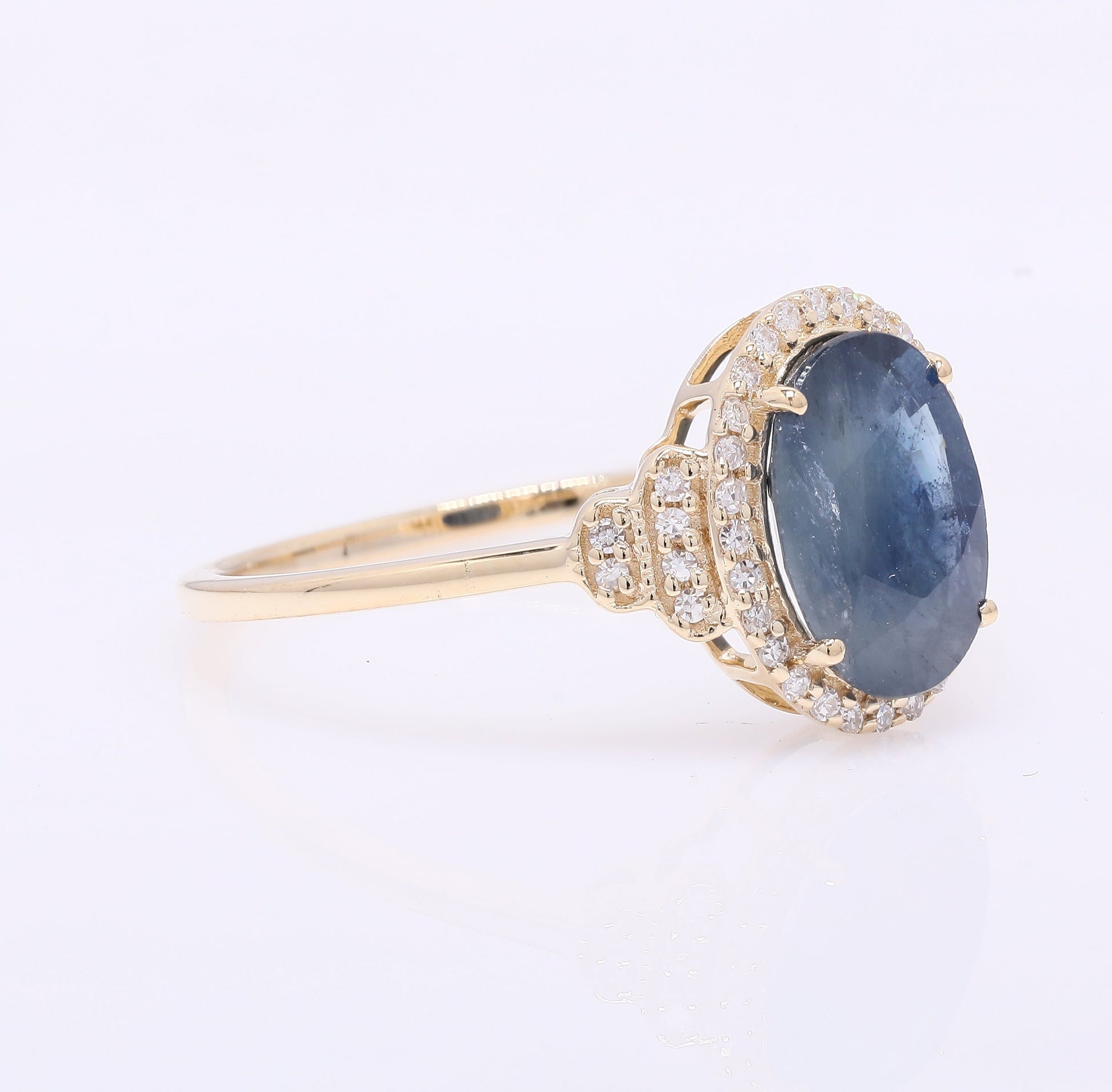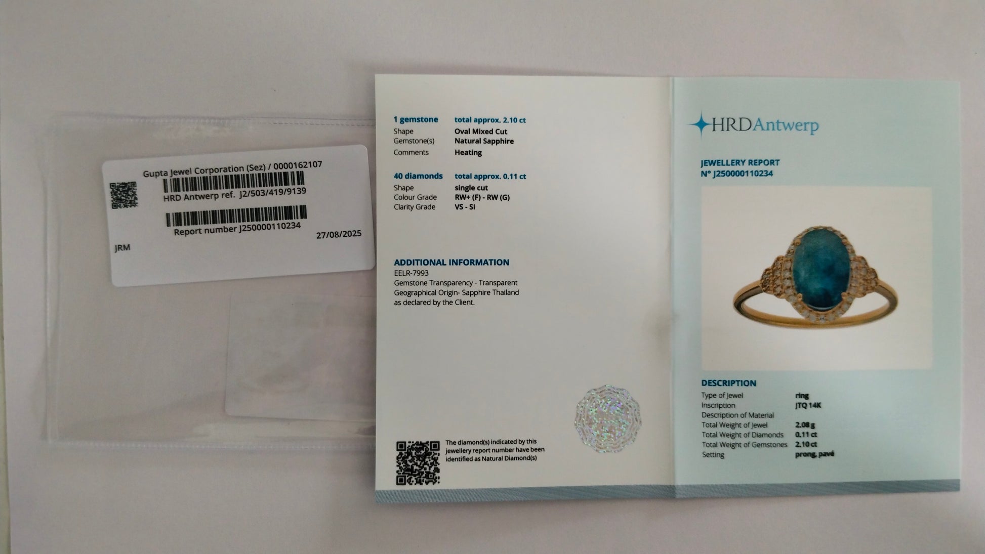 2.21 Ct Oval Mixed Cut Natural Sapphire 14K Gold Ring