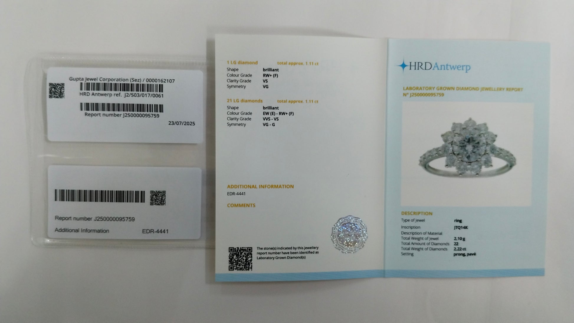 Total Lab Grown Diamond Weight: 2.22
