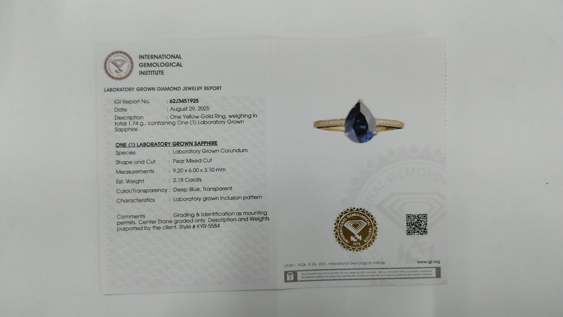2.24 Ct Pear Mixed Cut Lab Grown Sapphire 14K Gold Ring
