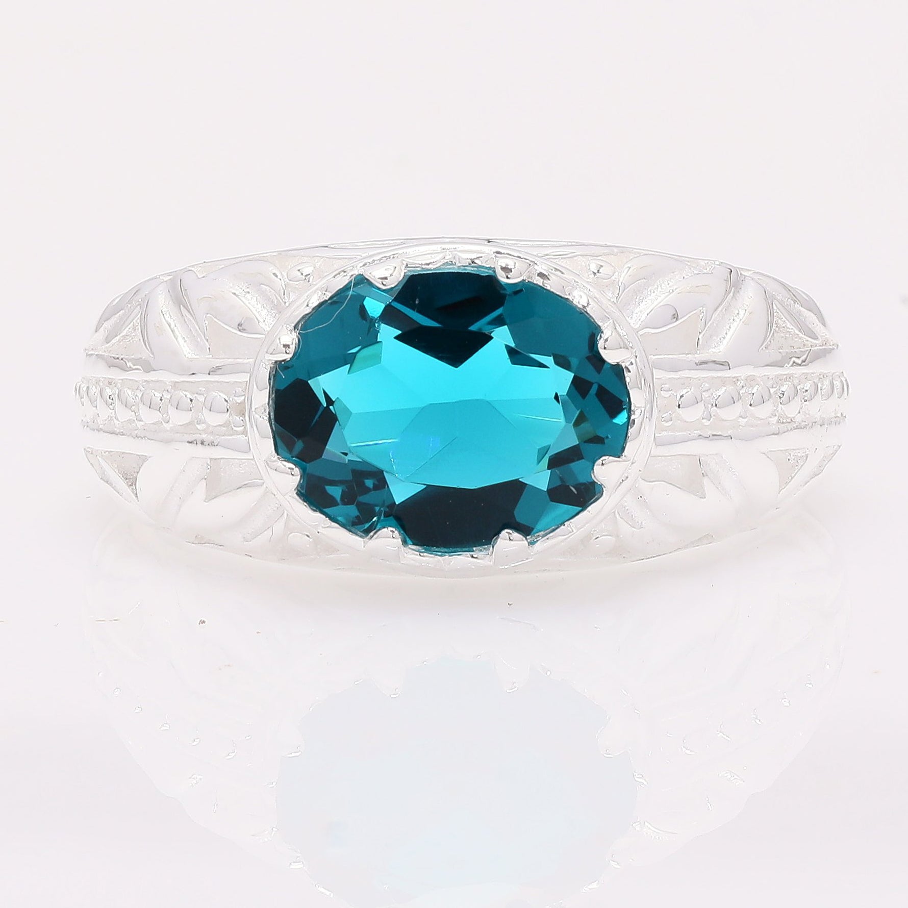 2.25 Ct Oval Created Paraiba Topaz 925 Silver Ring
