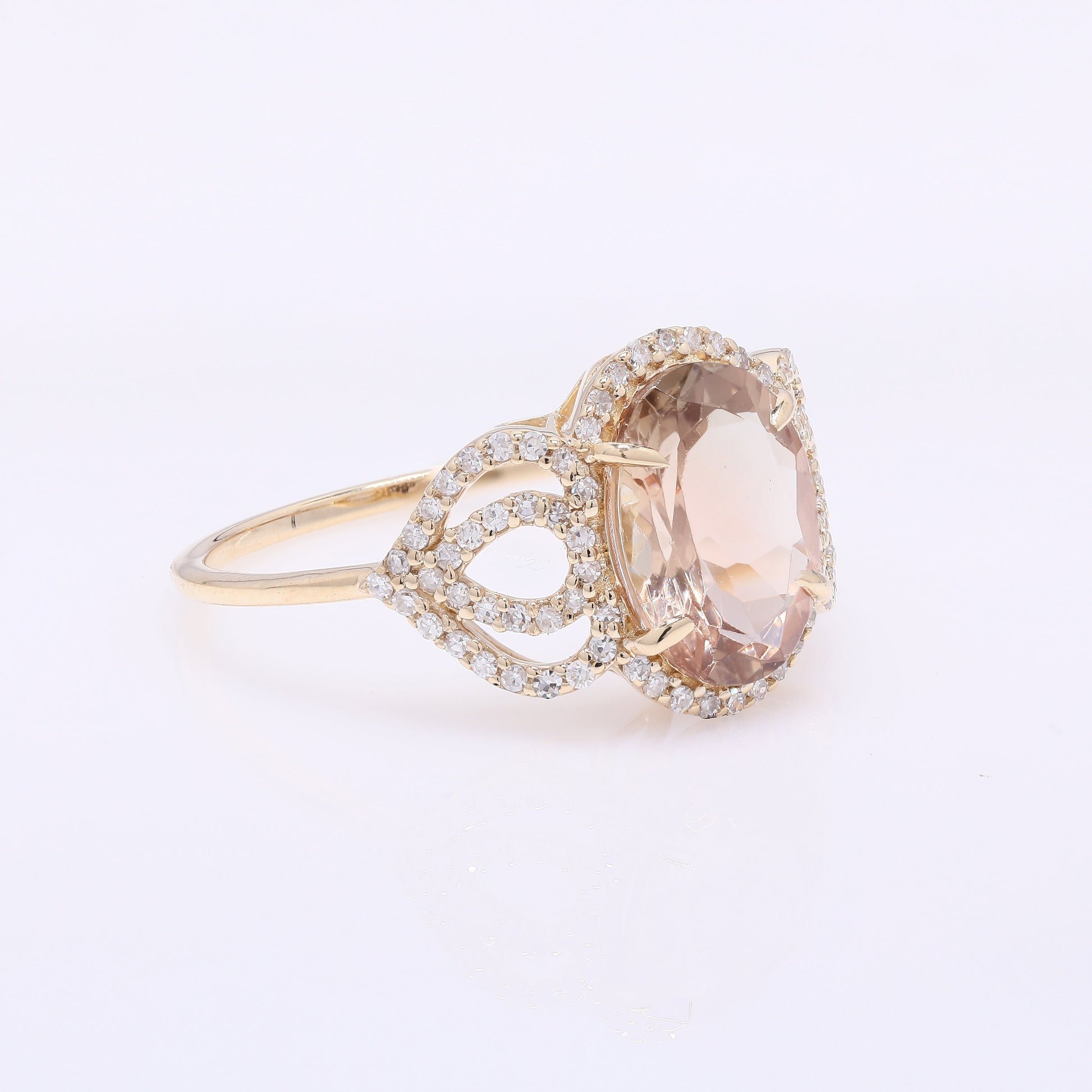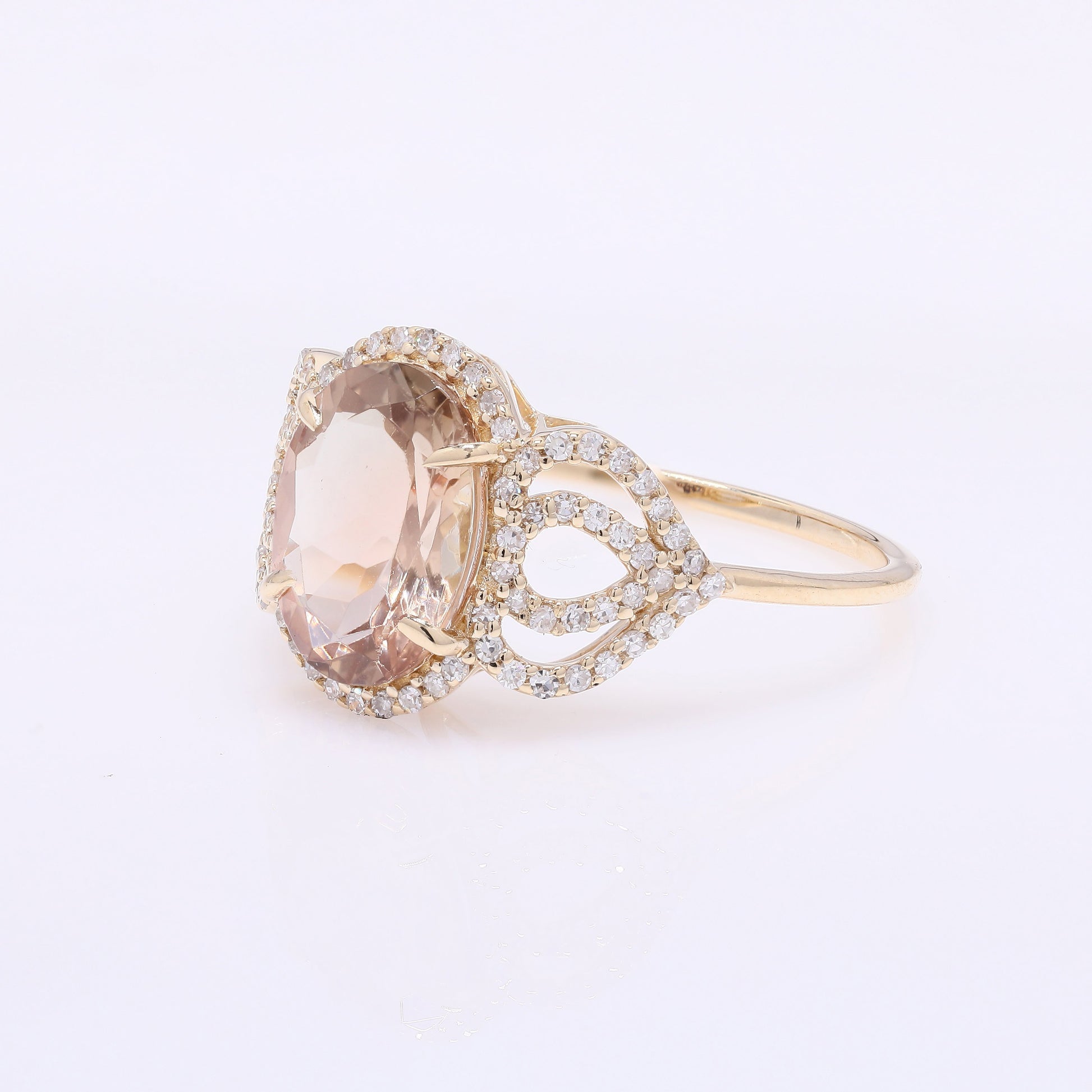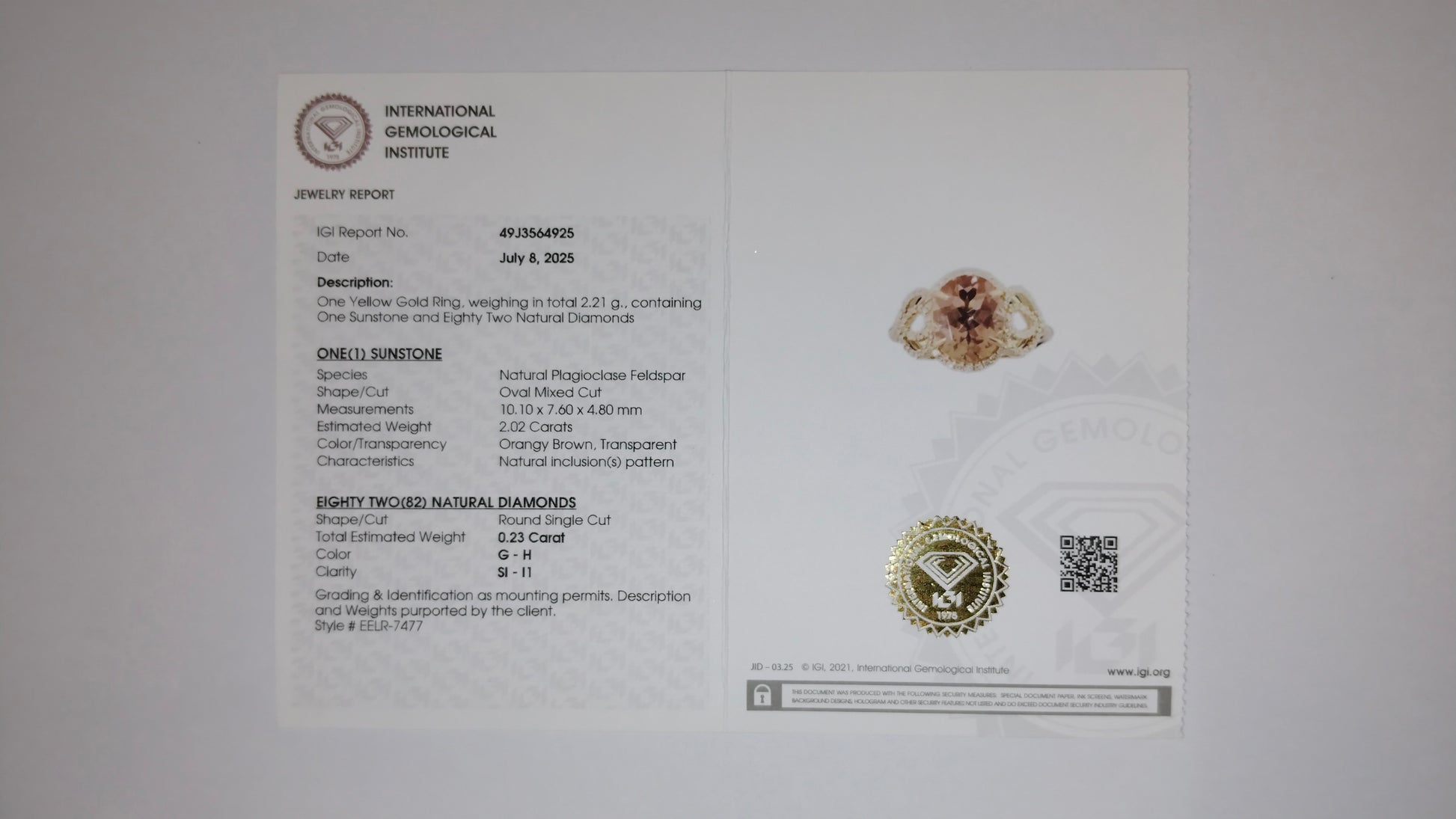 2.25 Ct Oval Mixed Cut Natural Plagioclase Feldspar Sunstone 14K Gold Ring