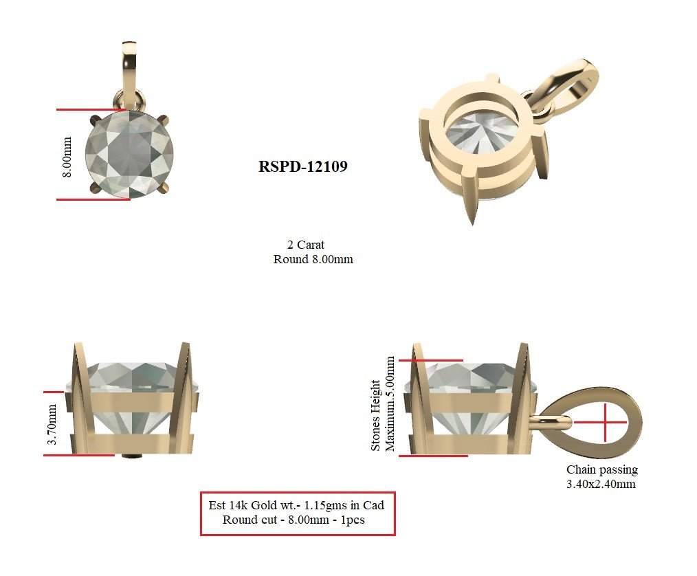 2.25 Ct Round Sapphire 14K Gold Pendant