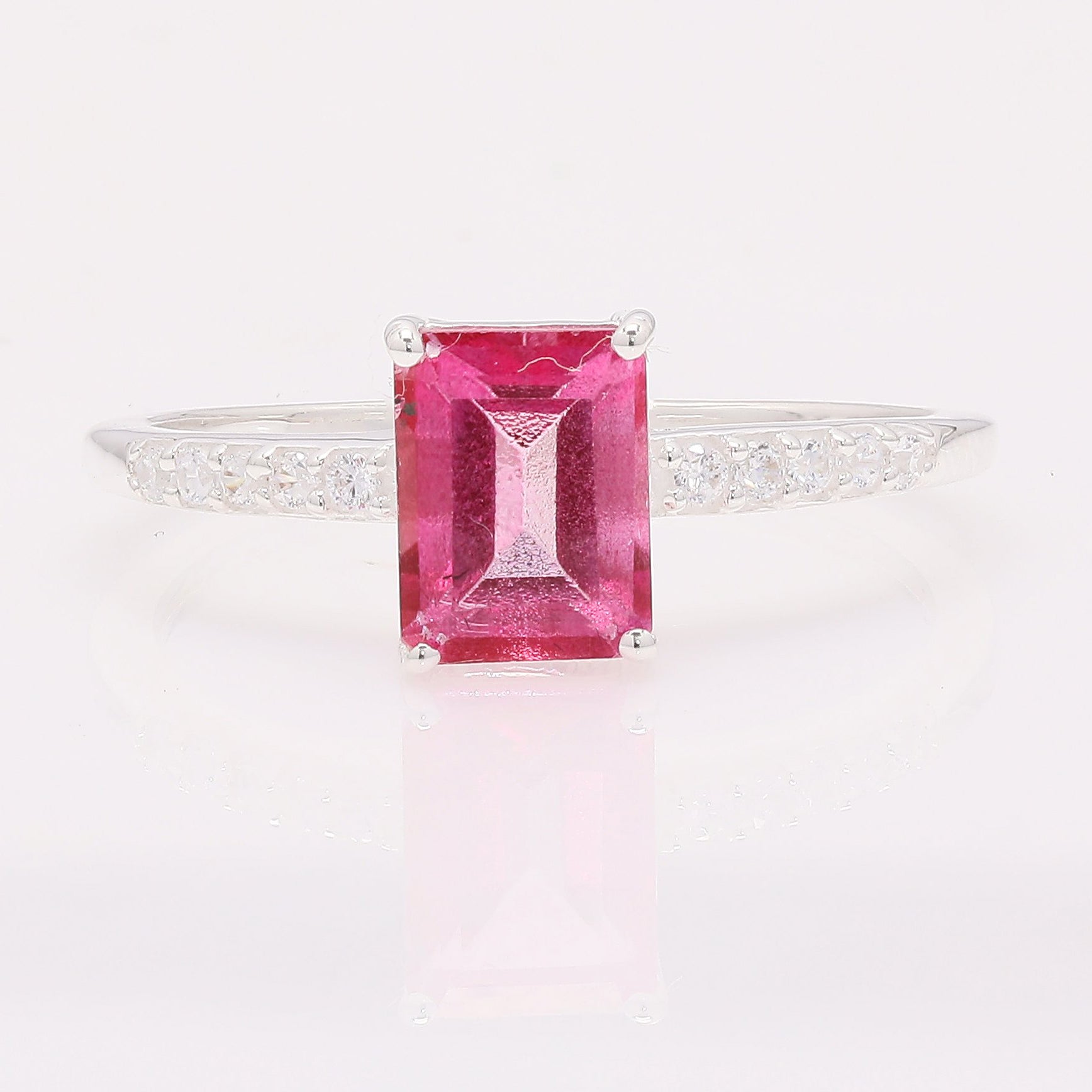 2.26 Ct Octagon Pink Topaz 925 Silver Ring