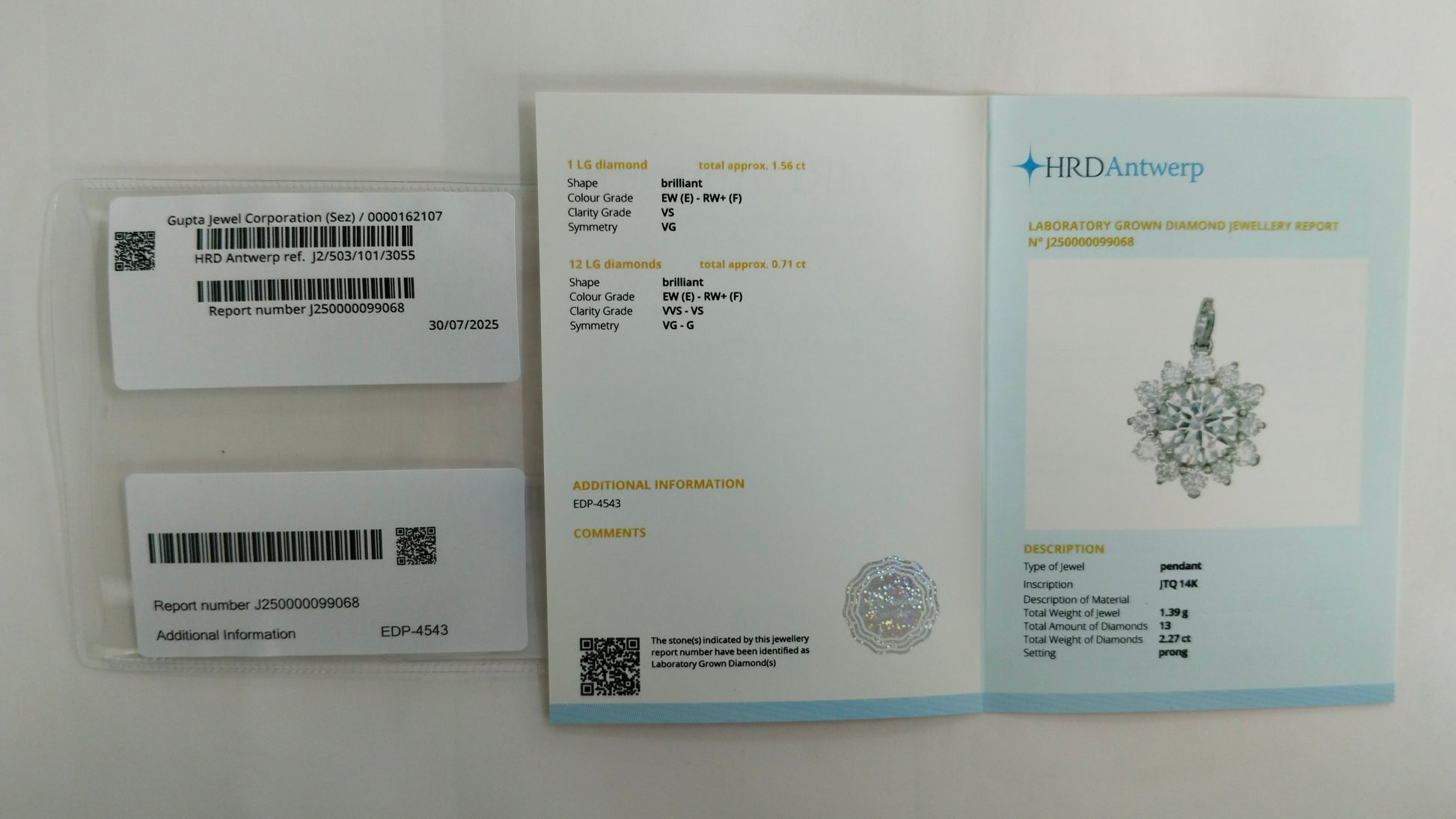 2.27-Carat Lab-Grown Diamond Round Cut Brilliant Pendant ? HRD Certified